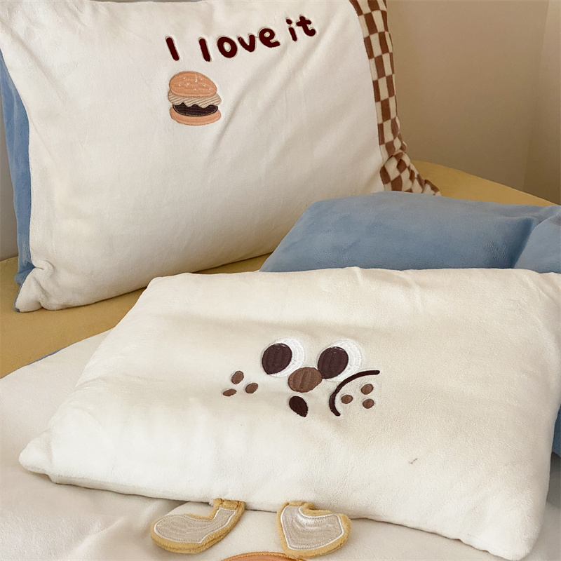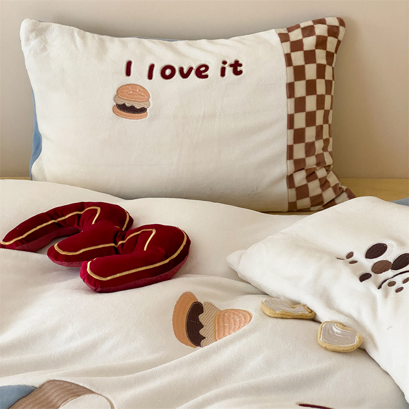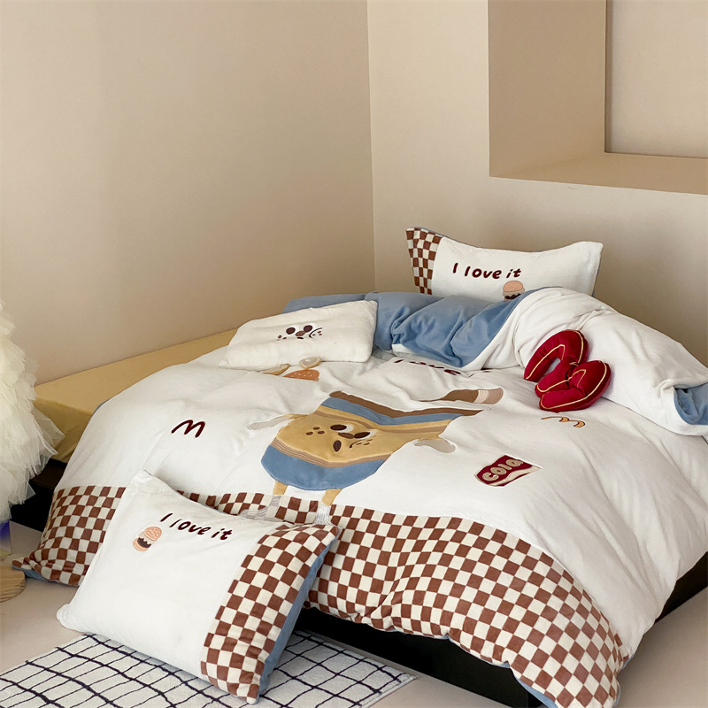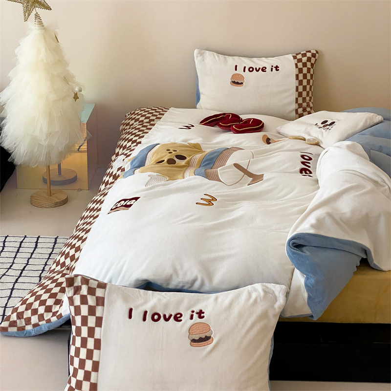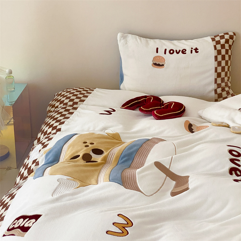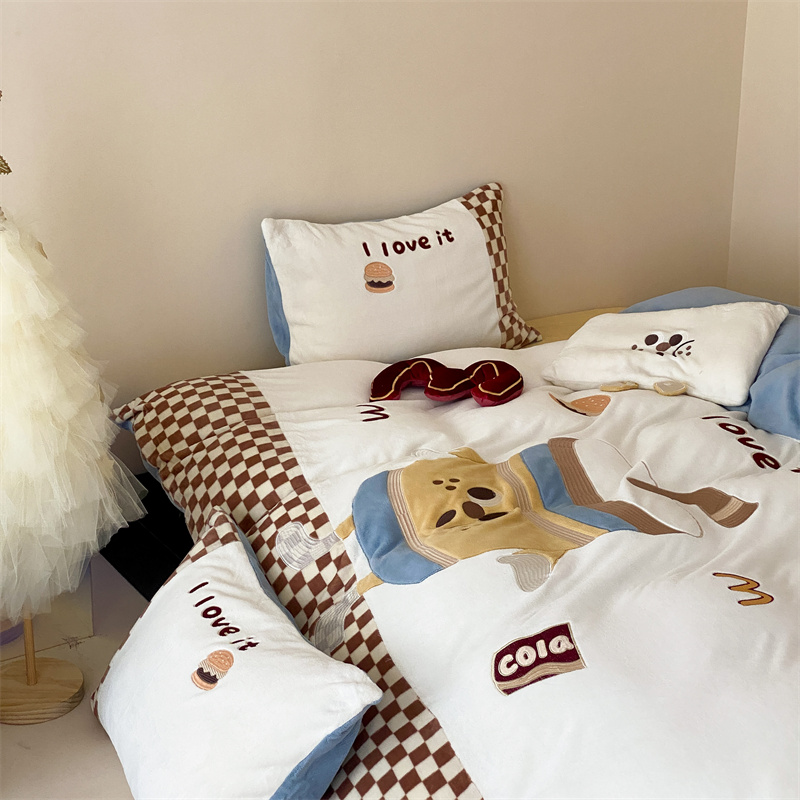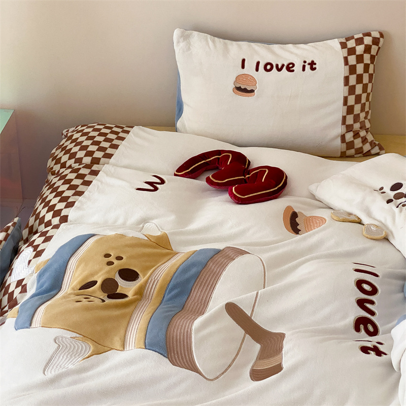 (总)星野 2025新款高克重牛奶绒贴布绣蕾丝边四件套-焦糖狗(商家控价券后:288/318/338 配送精致礼袋),焦糖狗