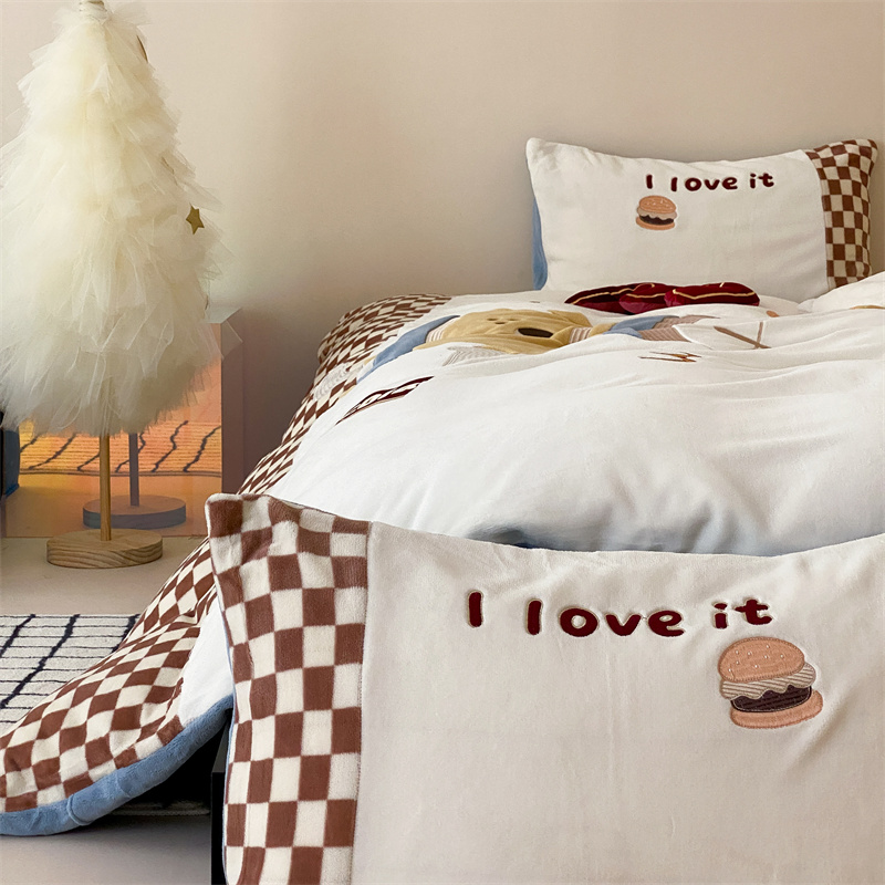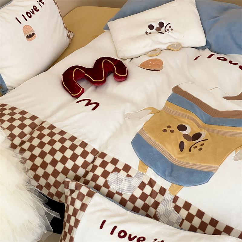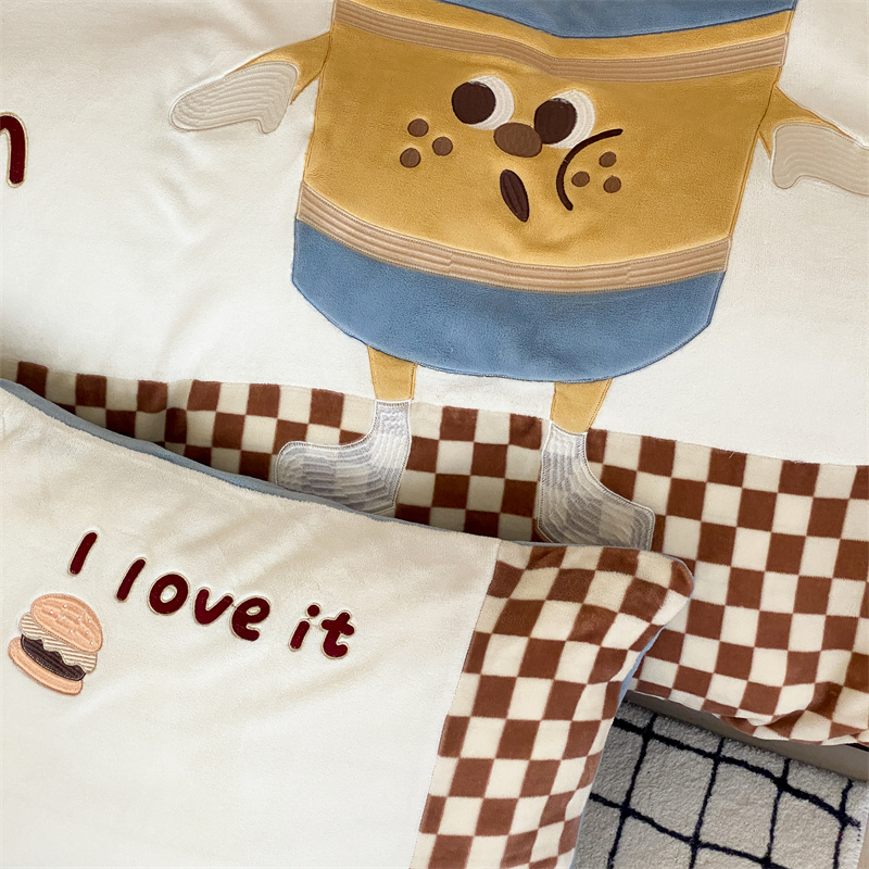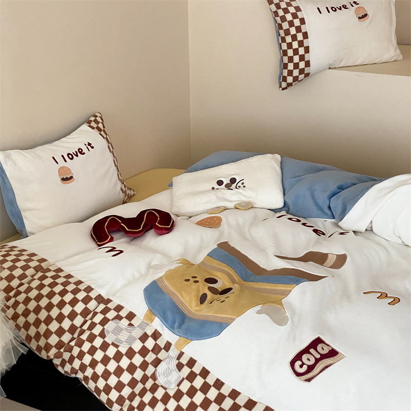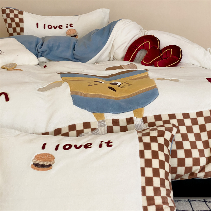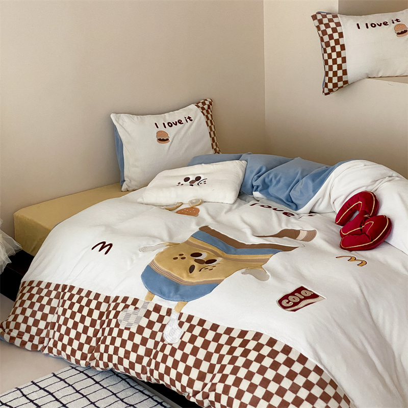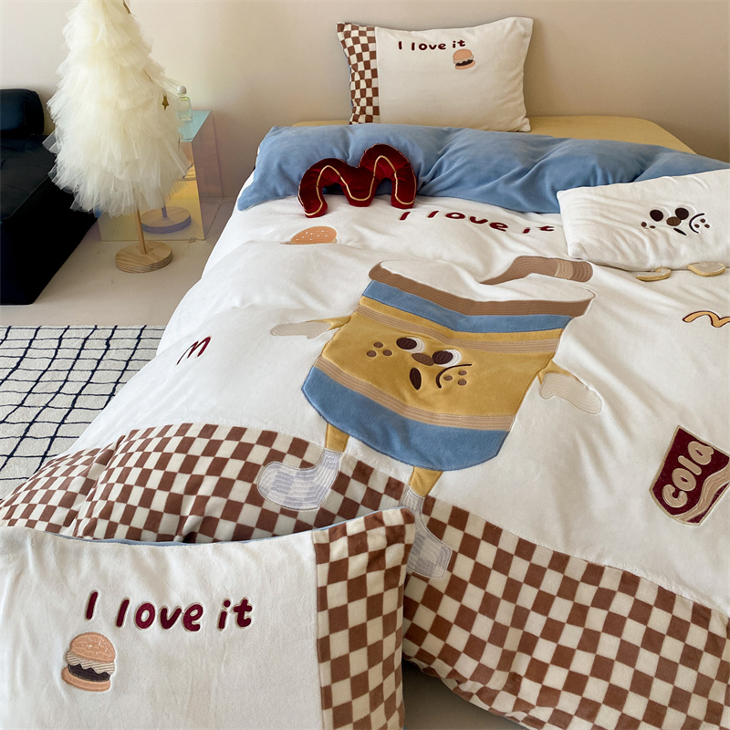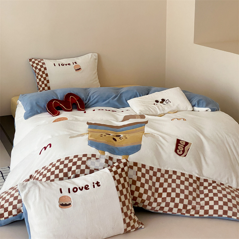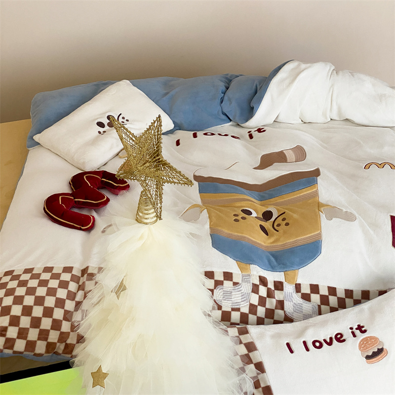 (总)星野 2025新款高克重牛奶绒贴布绣四件套-摇摇乐,摇摇乐