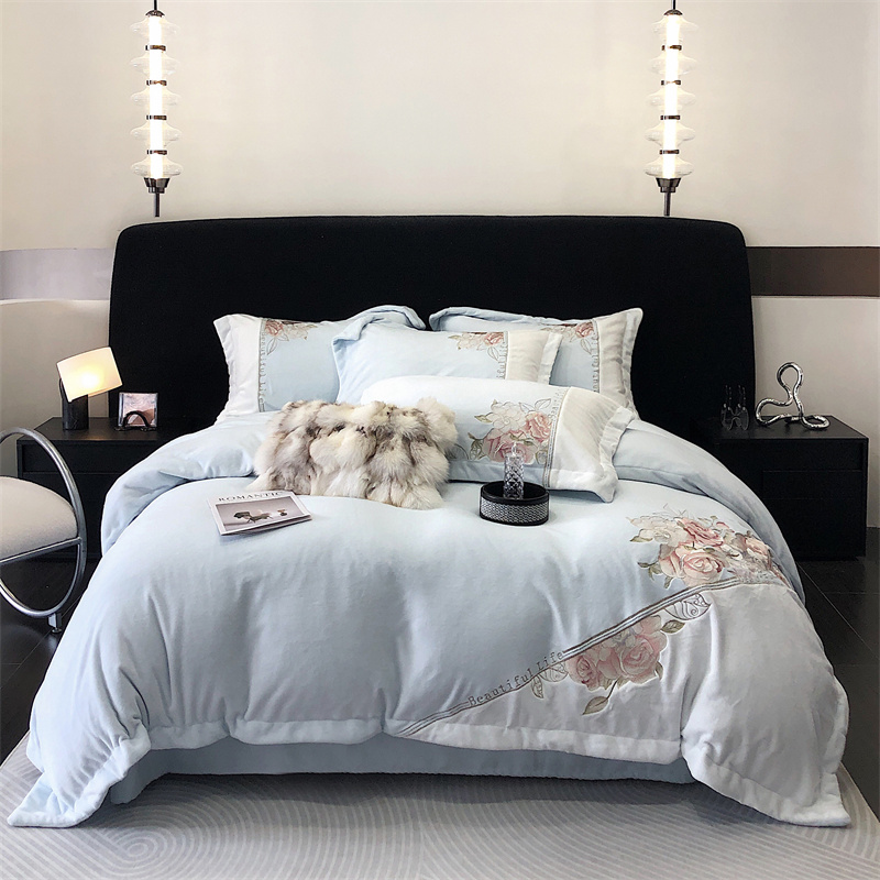 商品名称:馨蕊家居 2024新款秋冬轻奢煦暖绒系列四件套-佩斯丽 北卡蓝