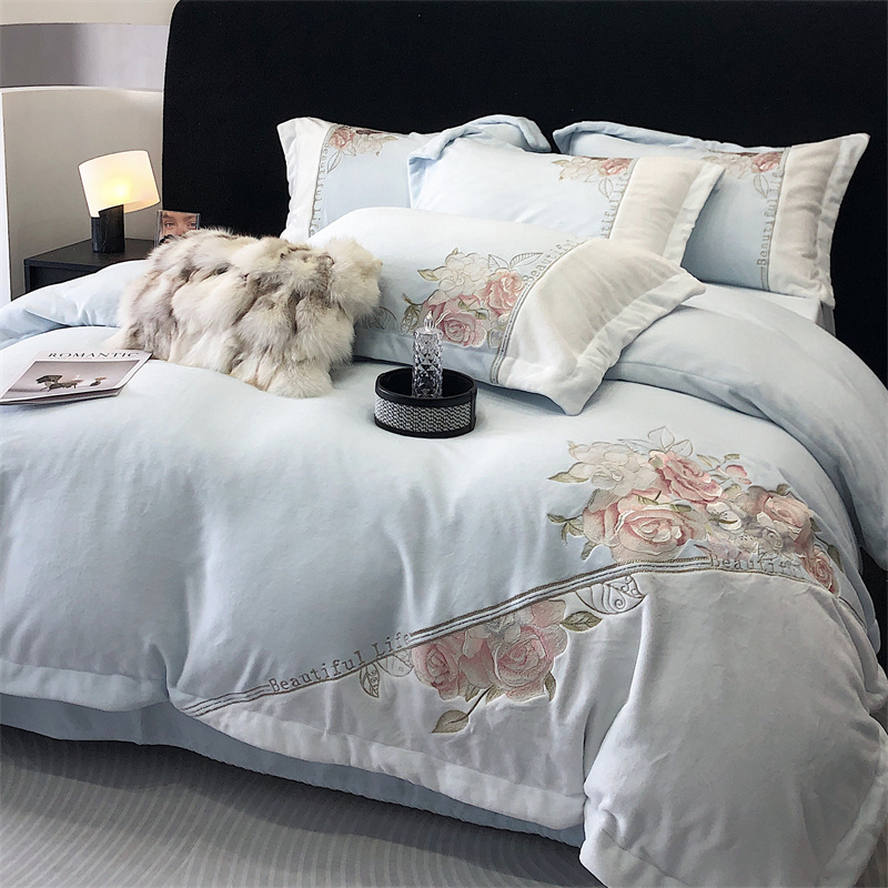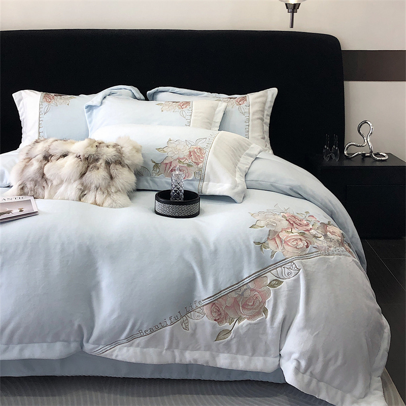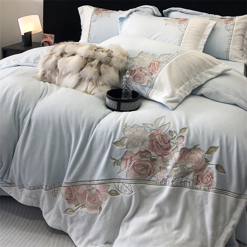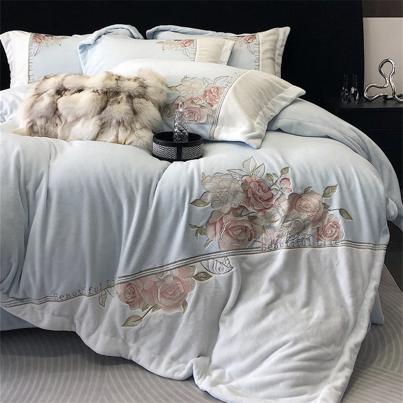 馨蕊家居 2024新款秋冬轻奢煦暖绒系列四件套-佩斯丽 北卡蓝