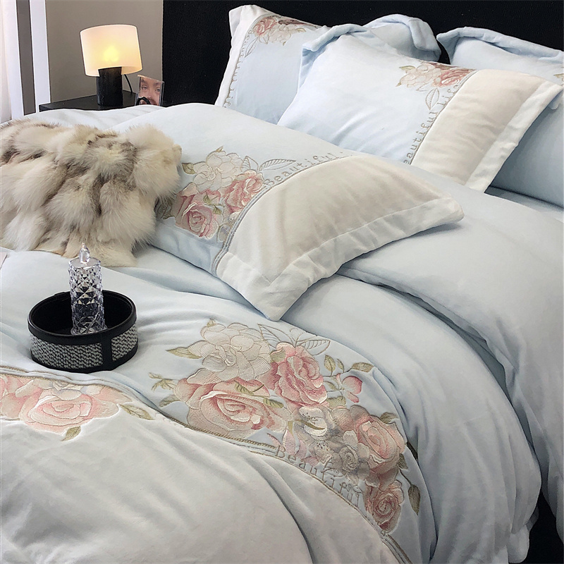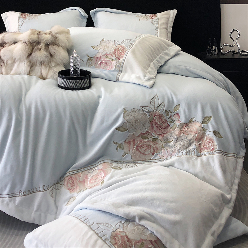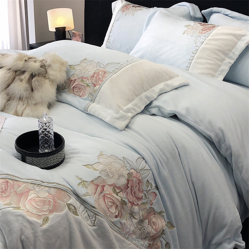 (总)馨蕊 2025新款意大利进口高精密刺绣拼角工艺秋冬轻奢煦暖绒系列-绒苏珊 会员-10【券后控价358/378】,绒苏珊-北卡蓝,绒苏珊-高级灰,绒苏珊-蔷薇粉,绒苏珊-香槟,组合