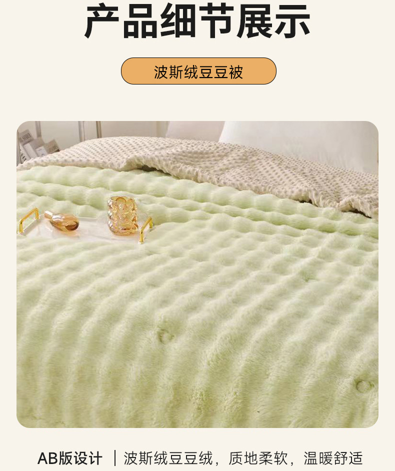 商品名称:博尔菲 新款波斯绒豆豆被 波斯绒-绿