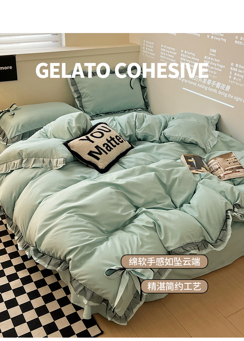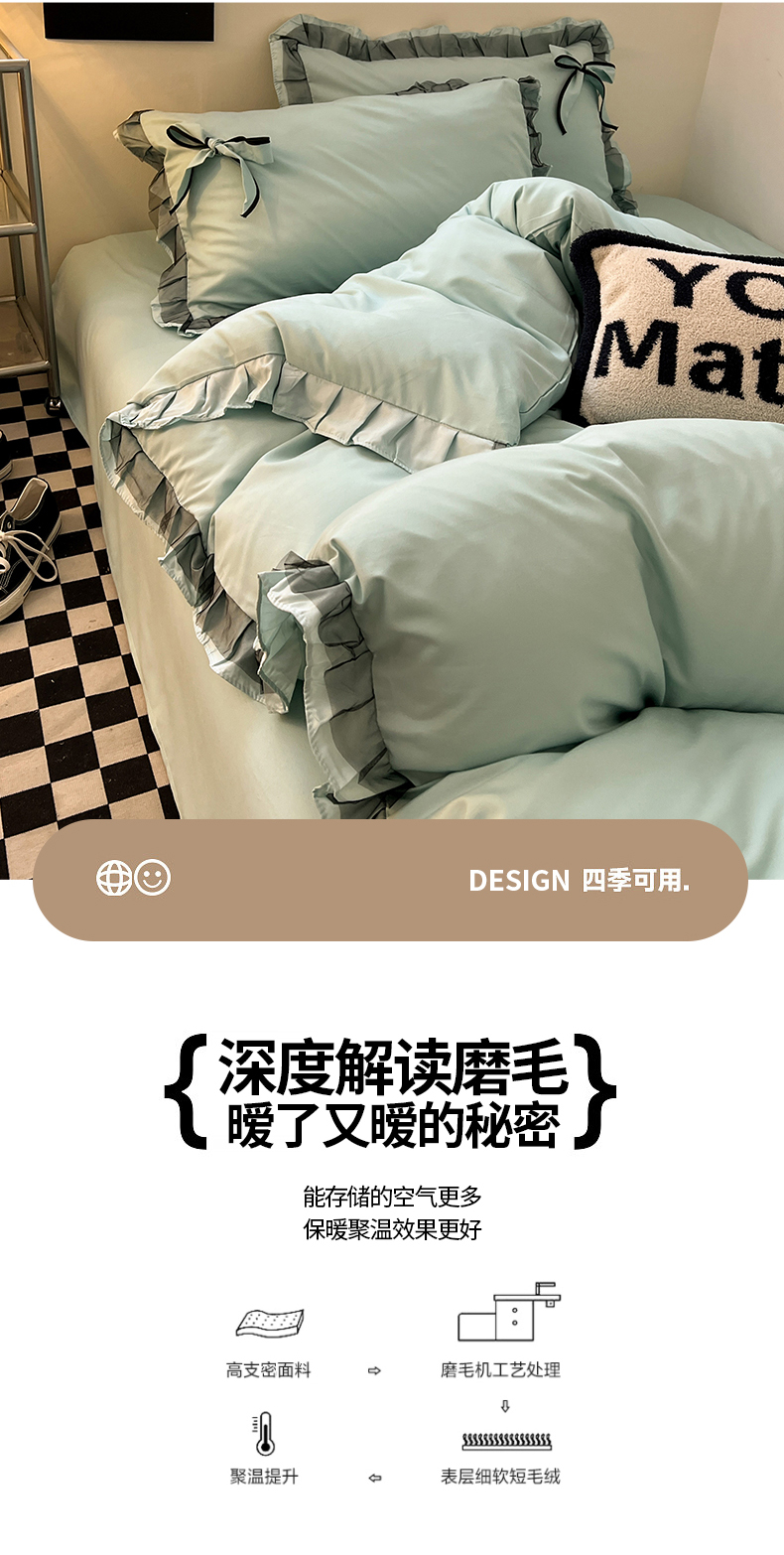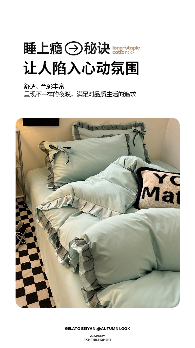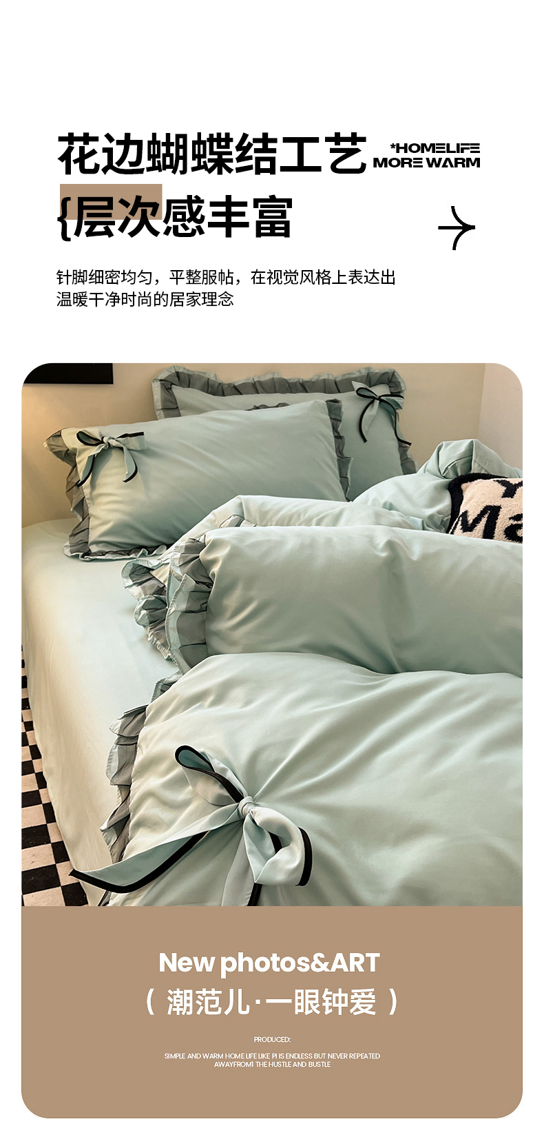 当前位置: 91家纺网 > 商品网购 > 床品套件 > 四件套 > 磨毛活性四件套 > 春光里 2024新款蝴蝶结花边磨毛四件套 蝴蝶花边-冰蓝