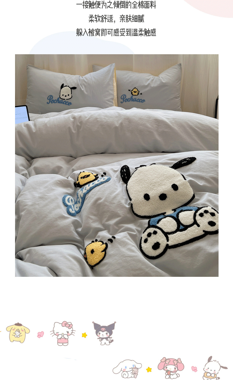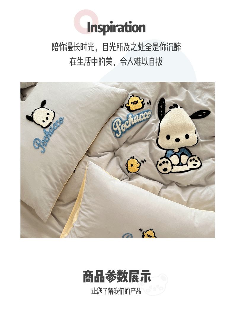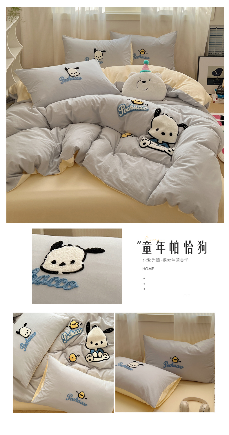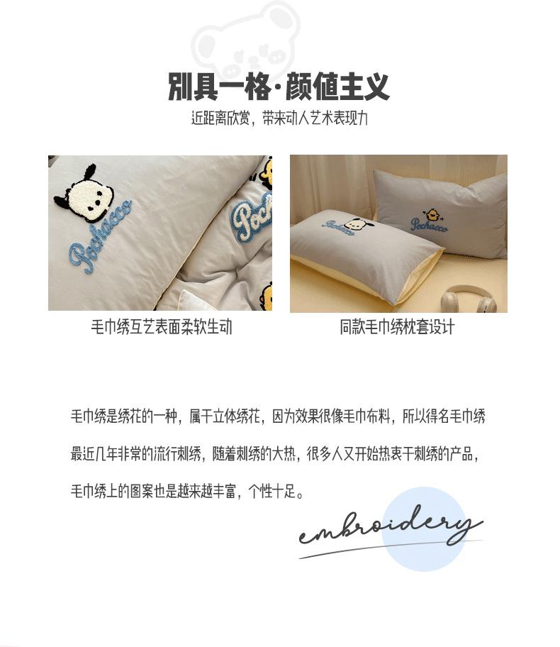 商品名称:三朵家纺 2024新款春夏全棉三丽鸥毛巾绣四件套 童年帕恰狗