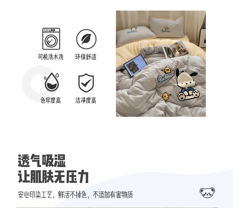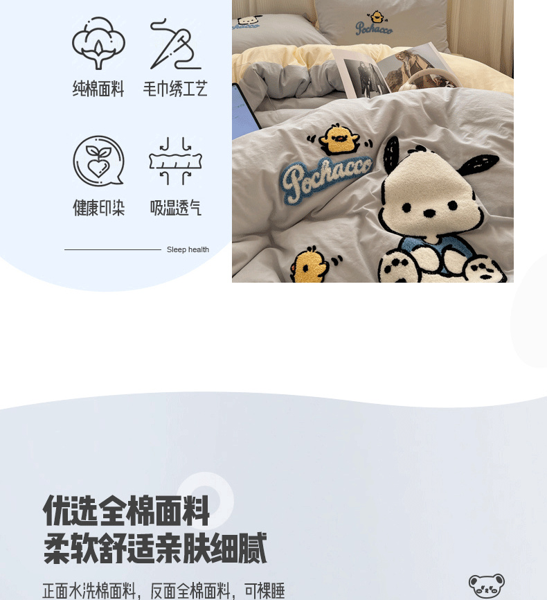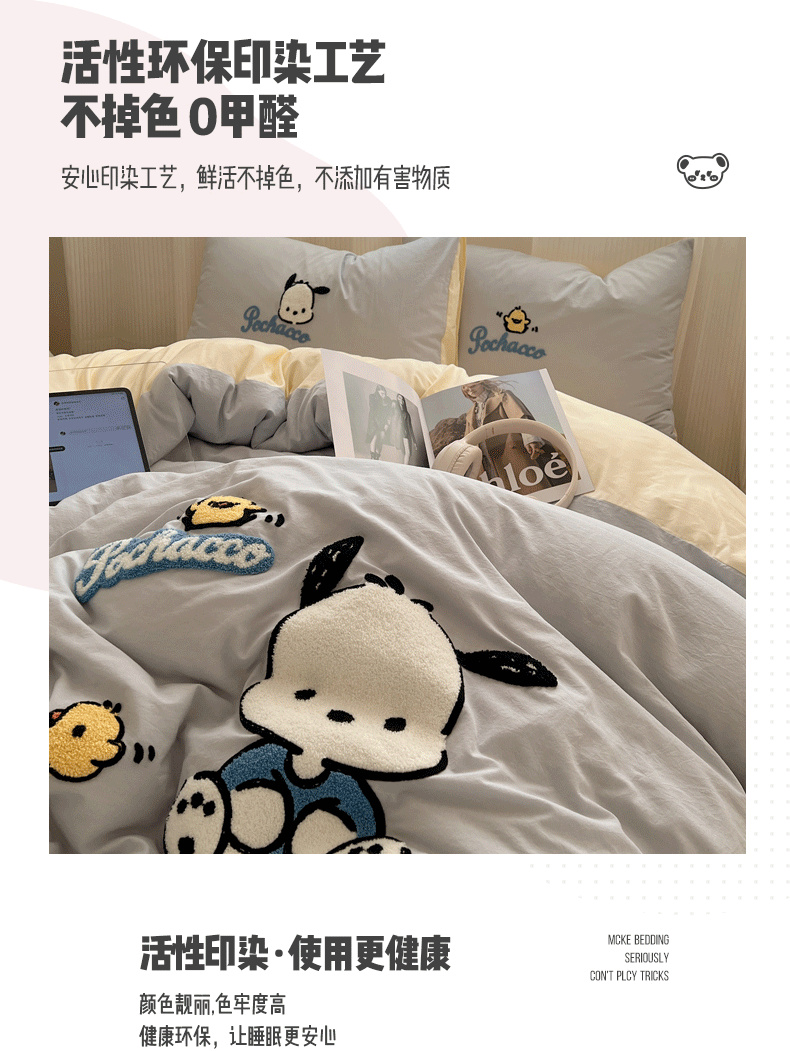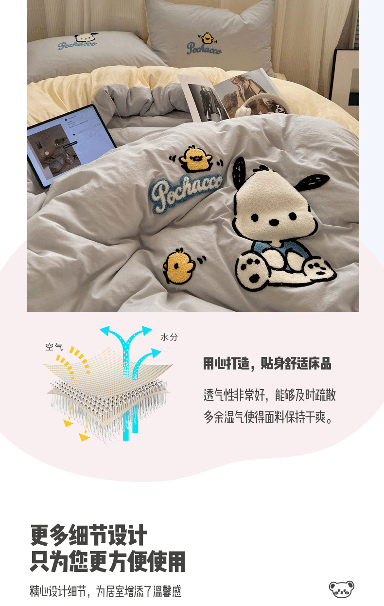 商品名称:三朵家纺 2024新款春夏全棉三丽鸥毛巾绣四件套 童年帕恰狗