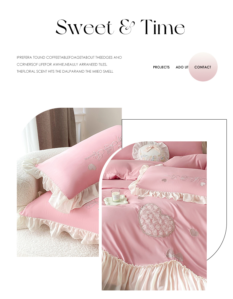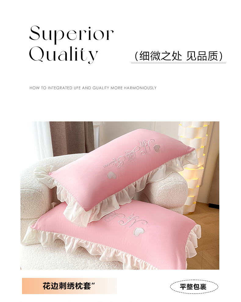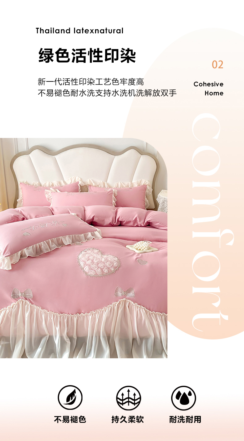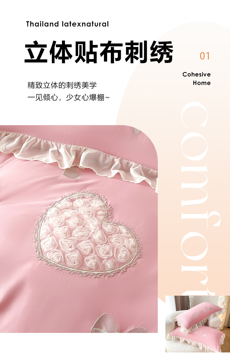 商品名称:富盛家纺 2024新款水洗亲肤棉立体刺绣四件套公主风四件套-爱心 爱心—豆沙