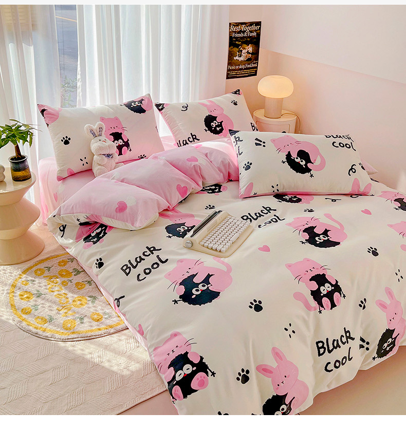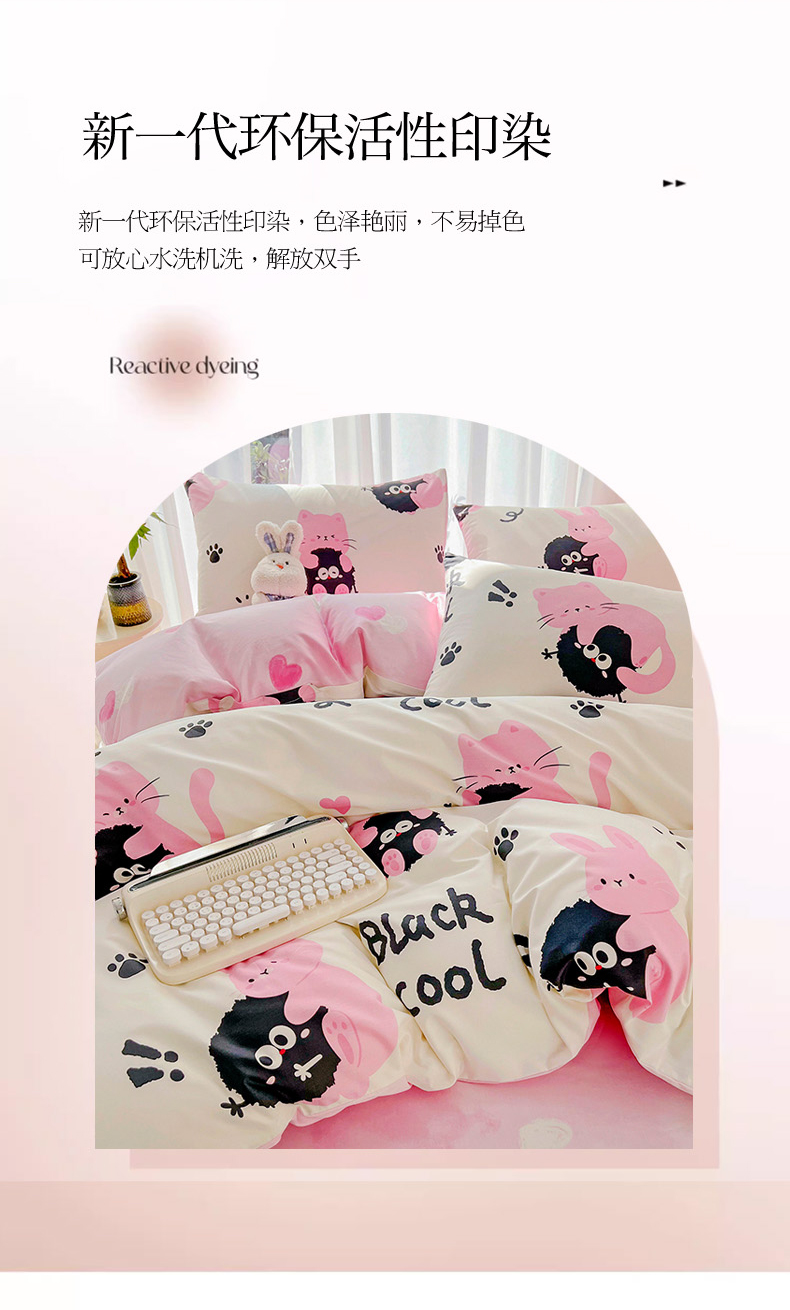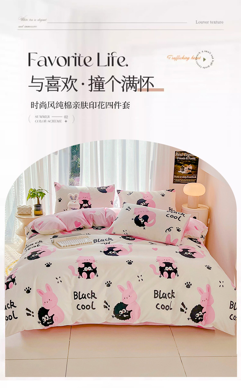 商品名称:倾慕家纺 2024新款时尚风全棉13070亲肤印花系列四件套 黑大帅