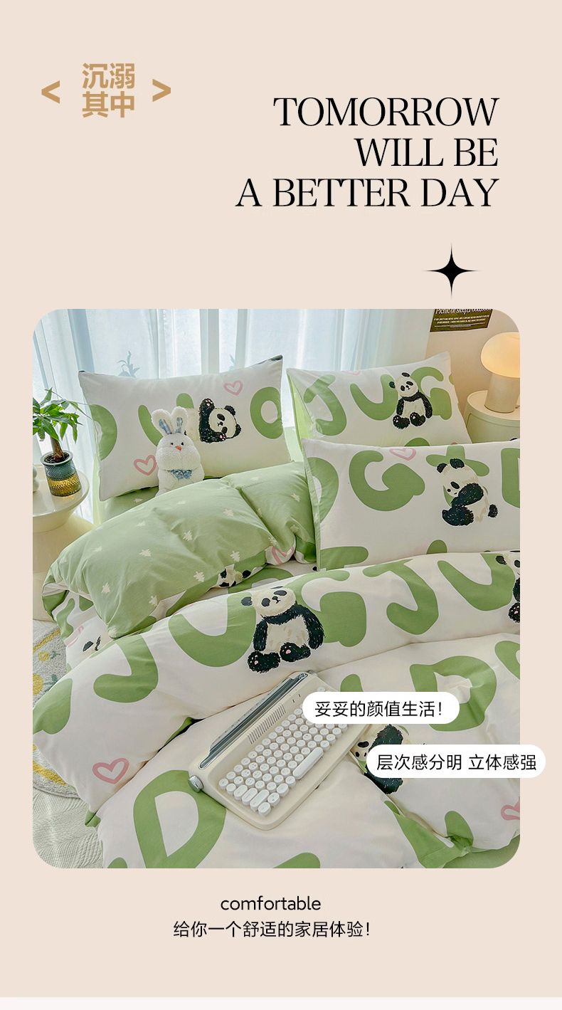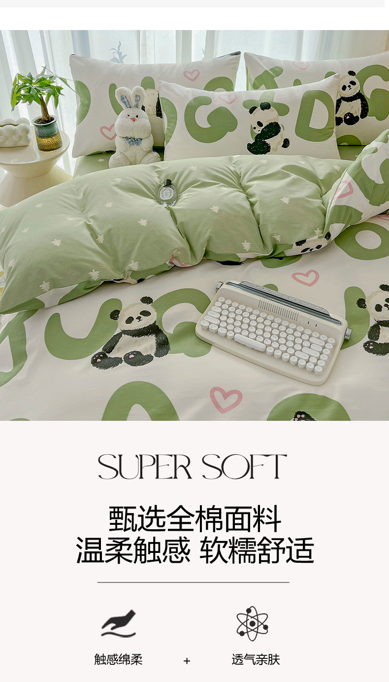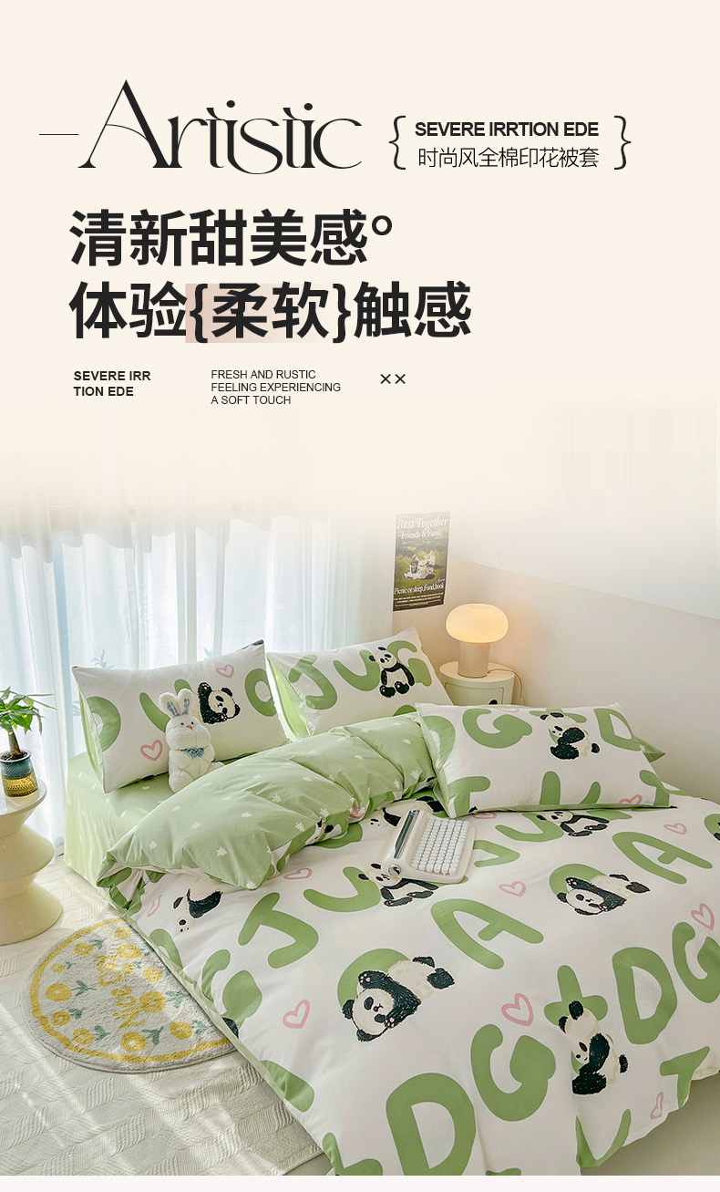 倾慕家纺 2024新款时尚风全棉13070亲肤印花系列单被套 米兜熊猫