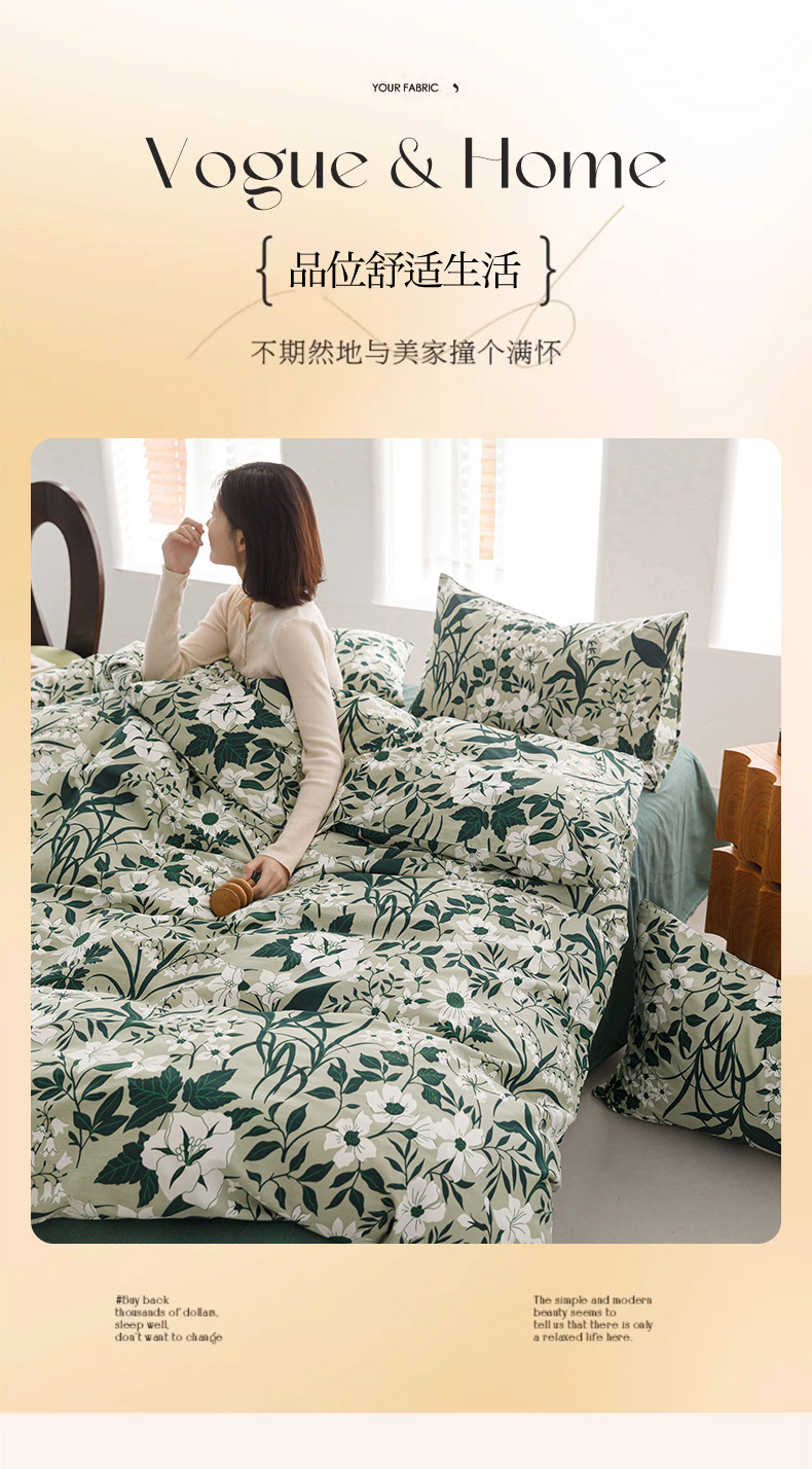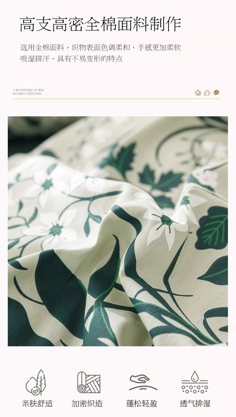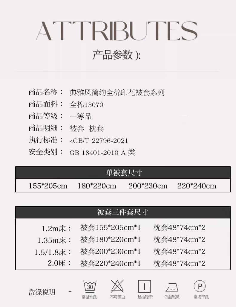 商品名称:倾慕家纺 2024新款典雅风全棉13370简约印花系列单被套 时光