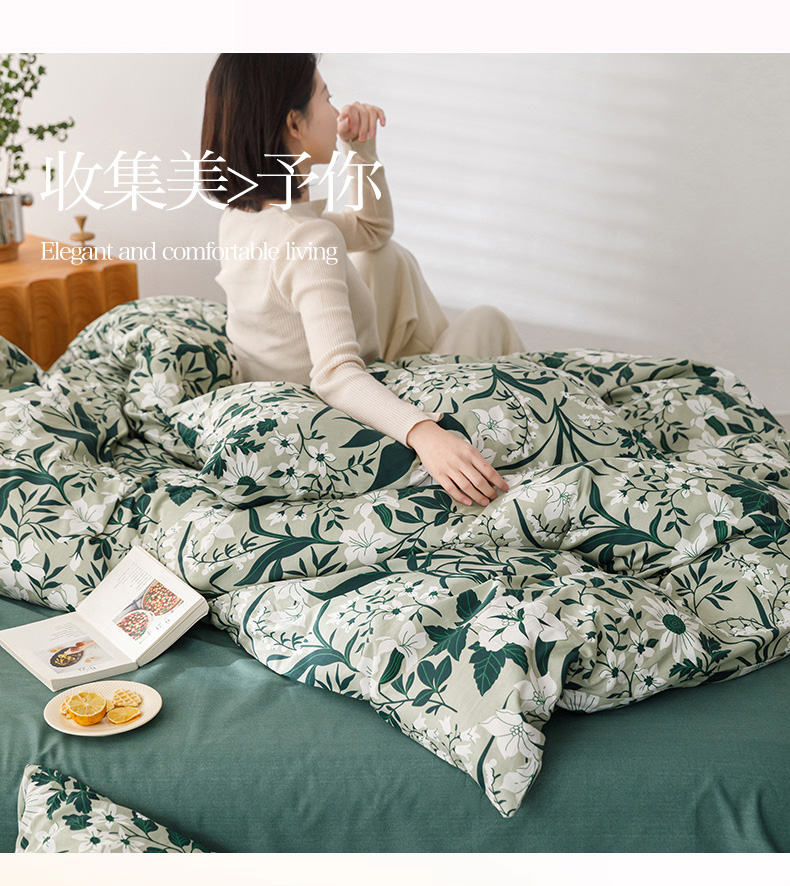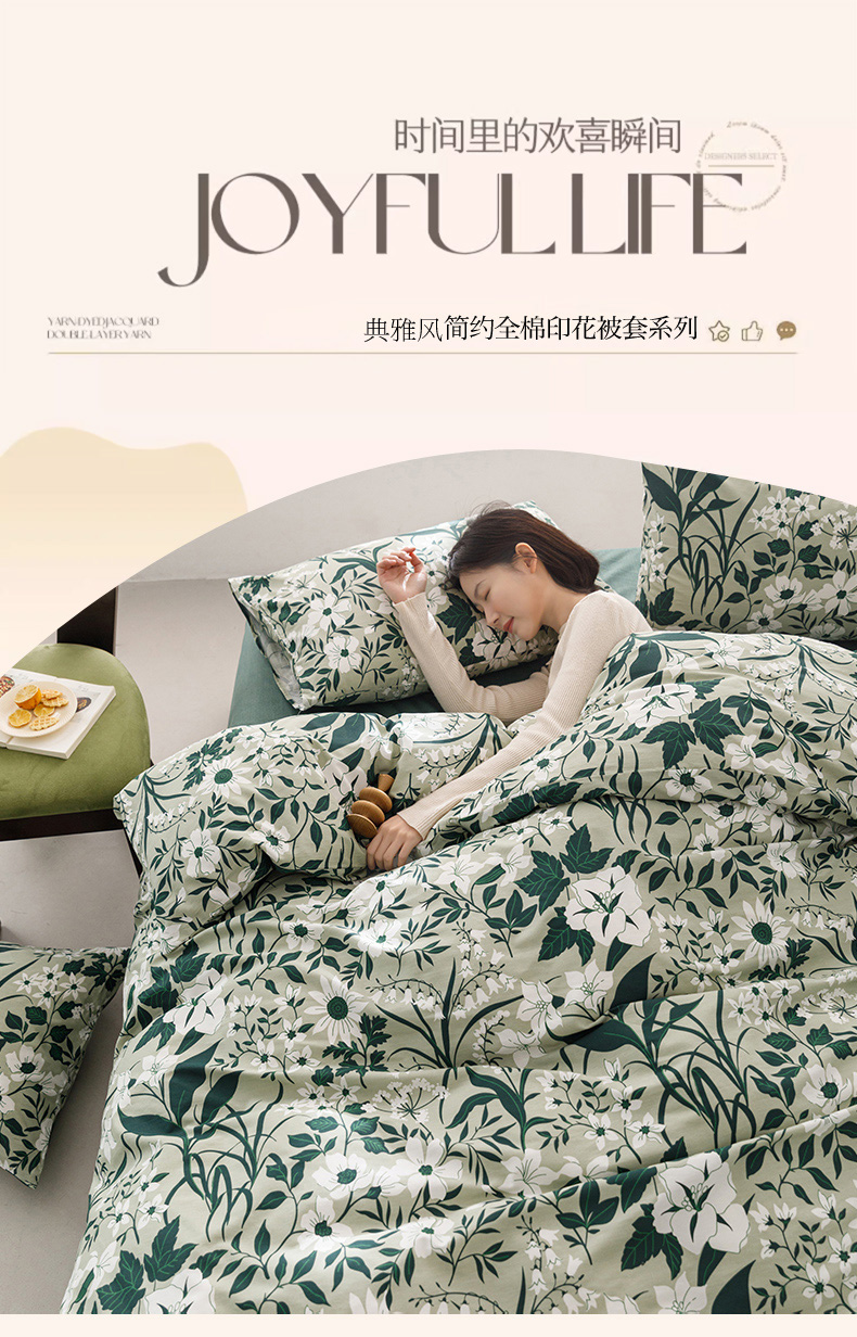 倾慕家纺 2024新款典雅风全棉13370简约印花系列单被套 时光