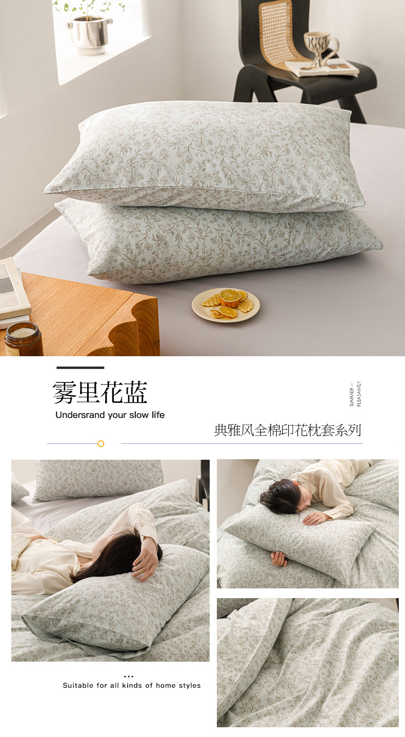 倾慕家纺 2024新款典雅风全棉13370简约印花系列单枕套 雾里花蓝