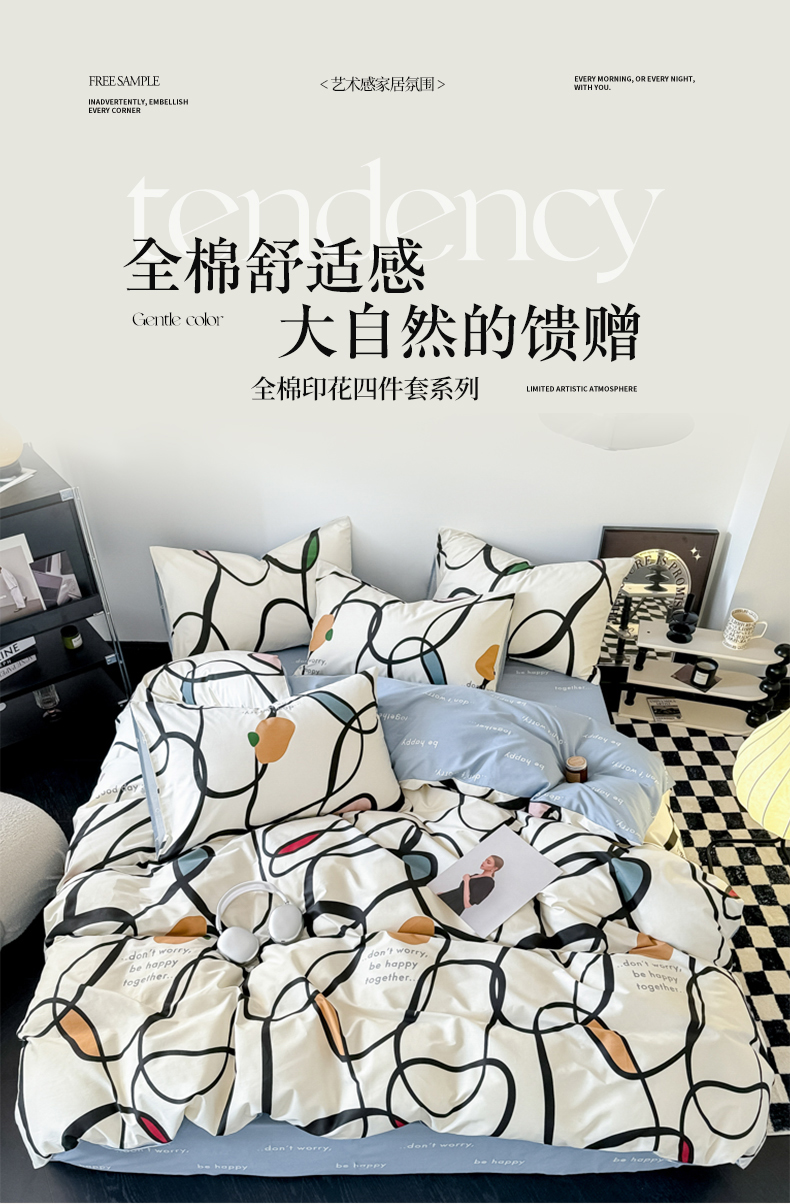 呗旺鹿 2024新款休闲风全棉纯棉四件套 朗尼