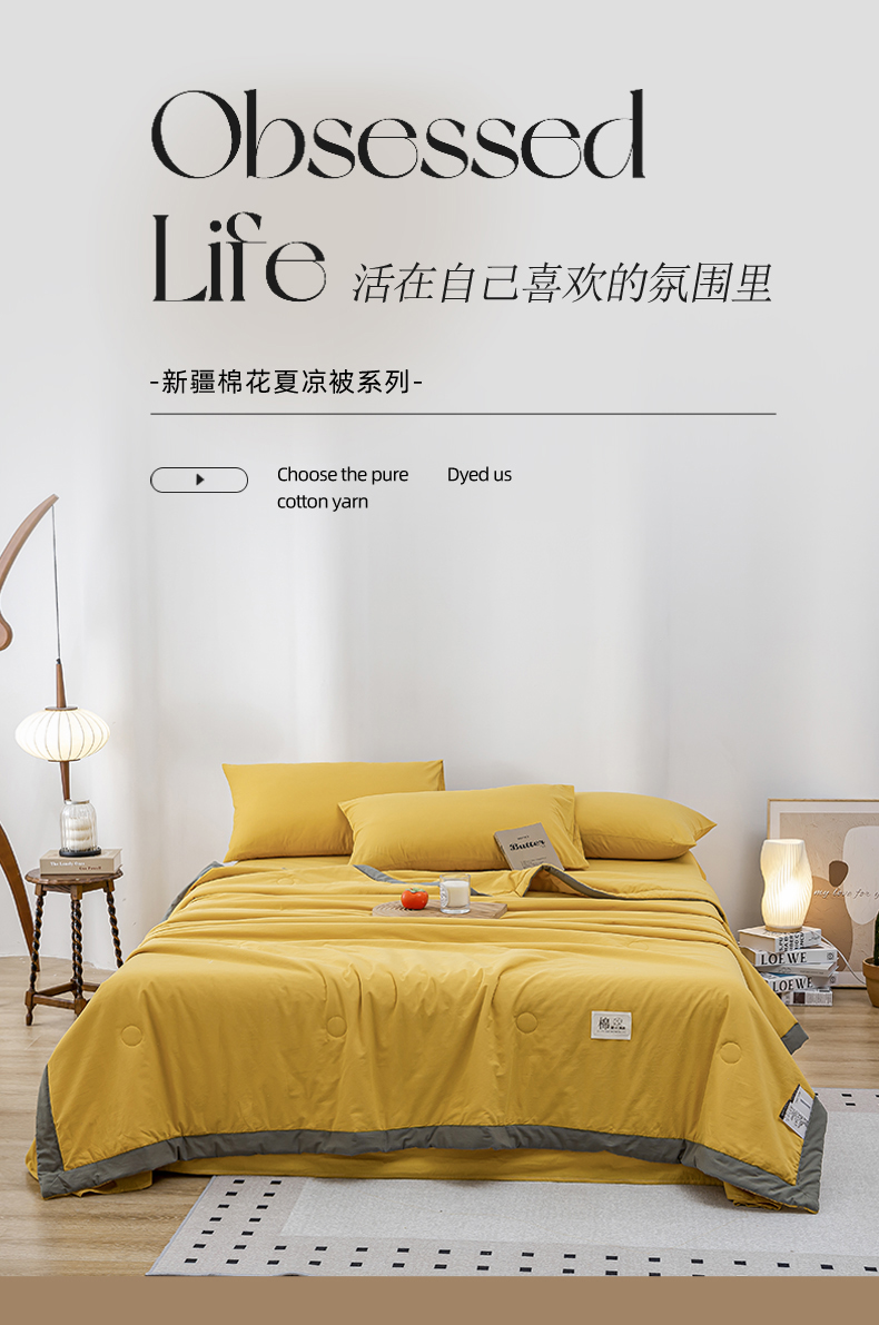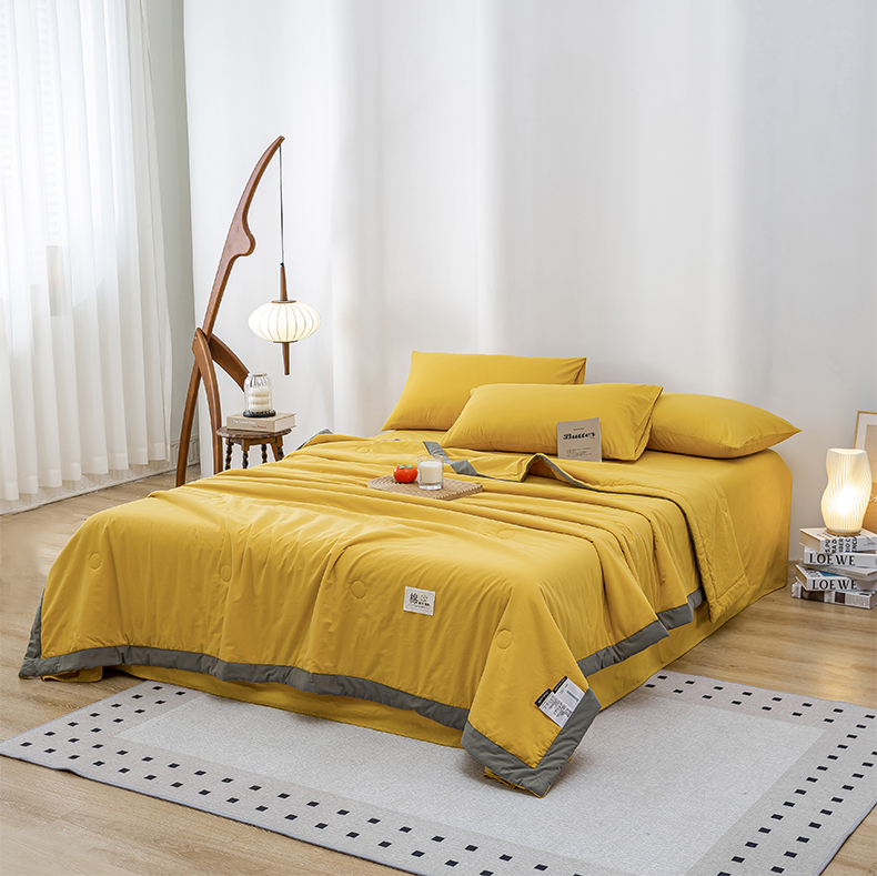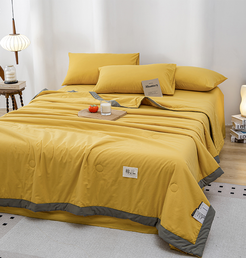 鸣升家纺 新款里外全棉100%新疆棉花被夏被四件套 黄色