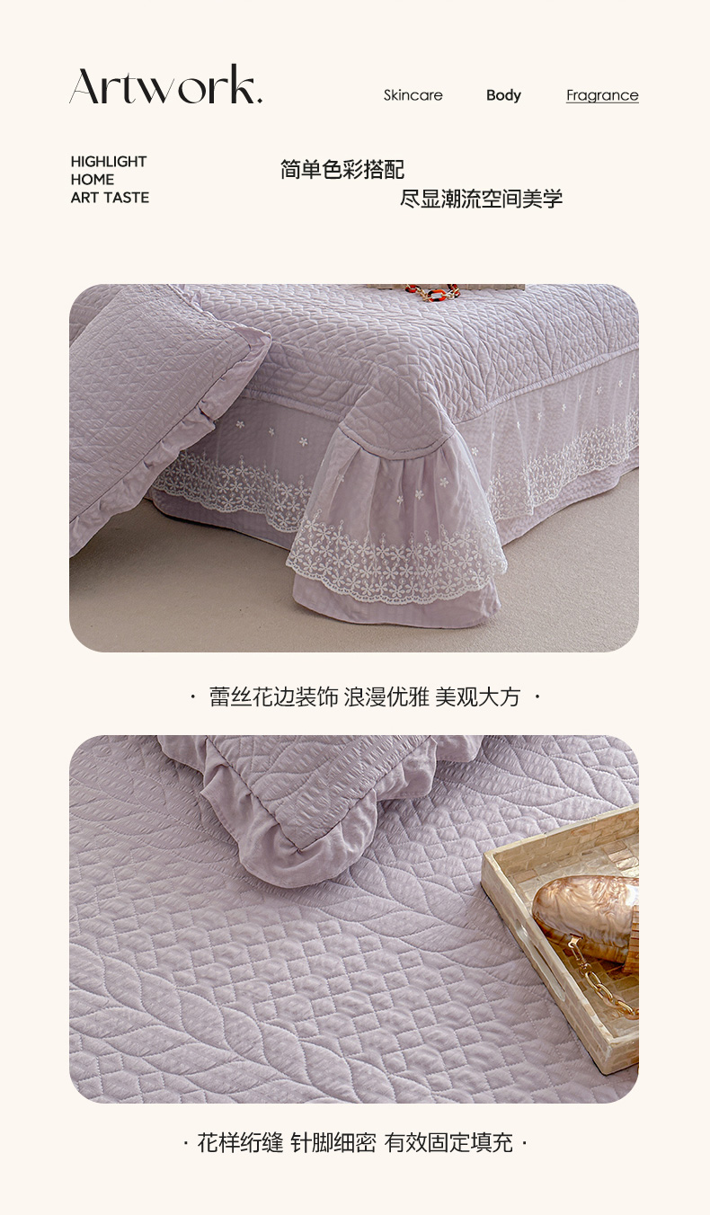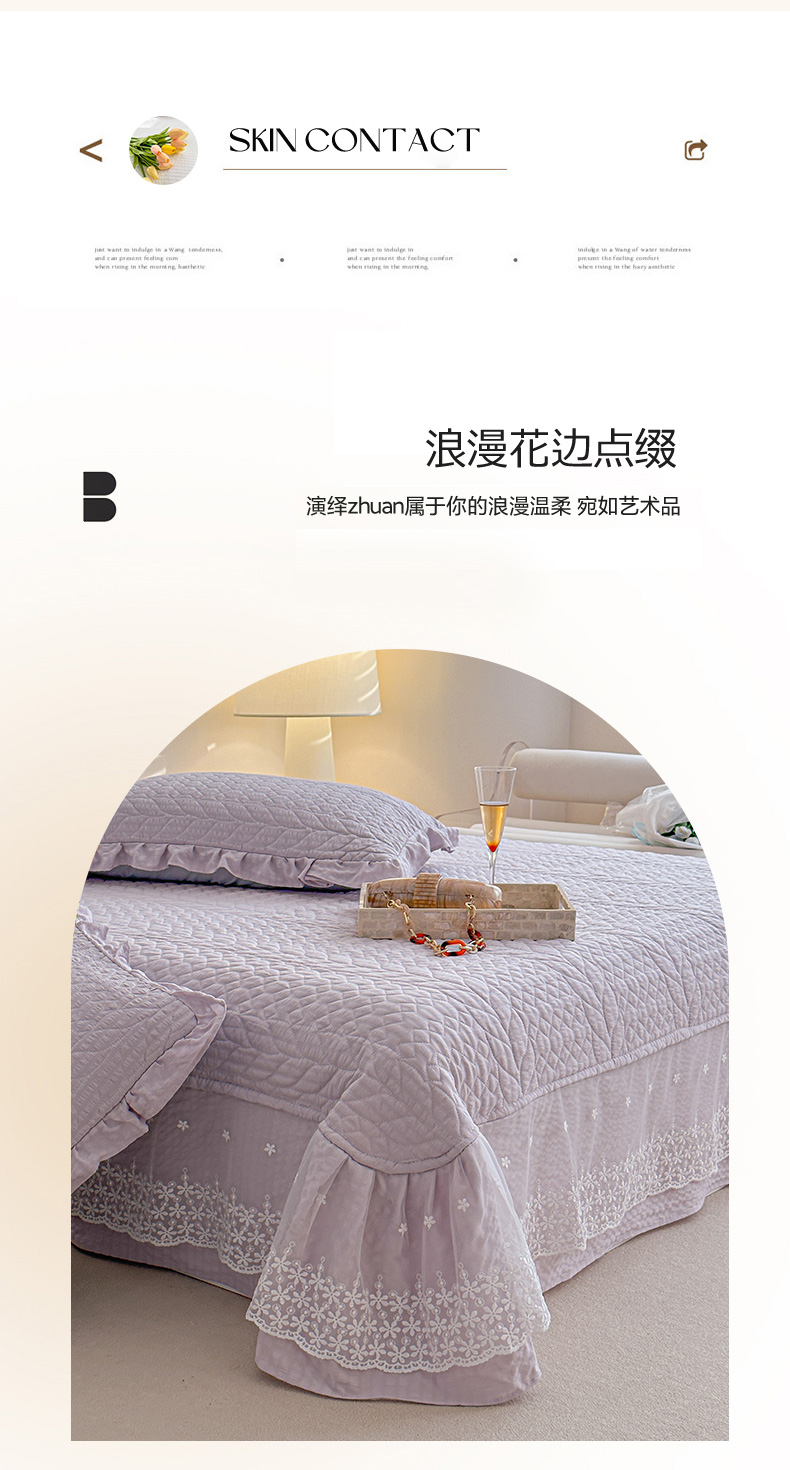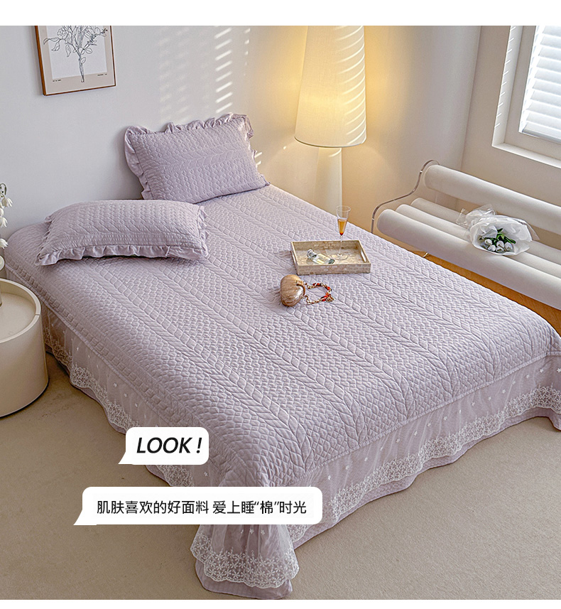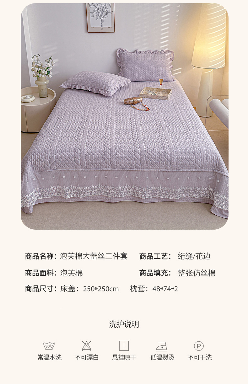 商品名称:源舜家纺 2025新款泡芙棉大蕾丝床盖款三件套 花边紫色