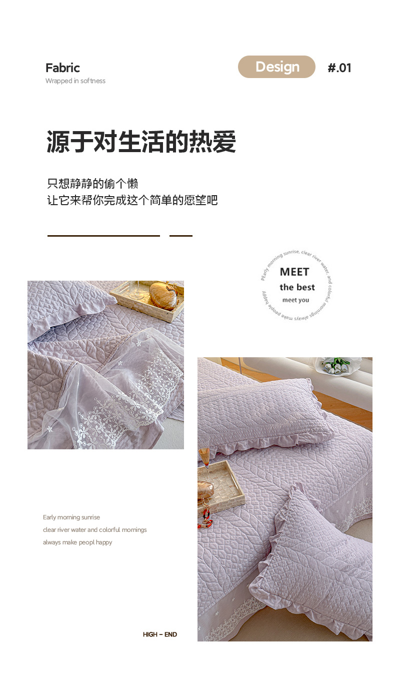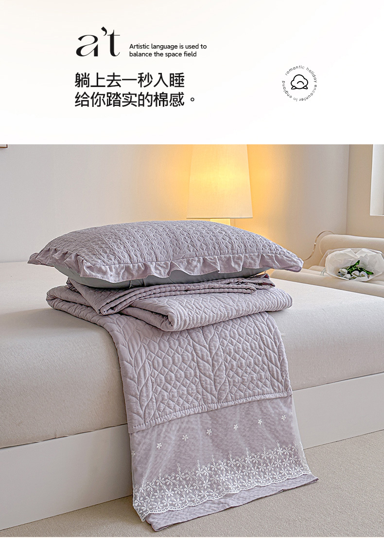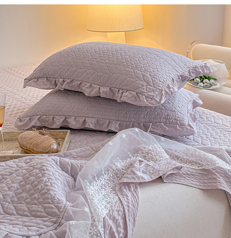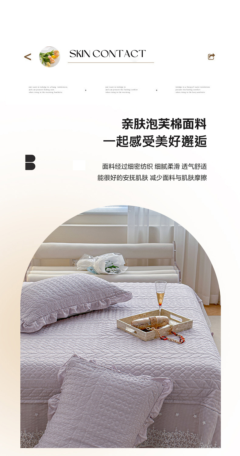 商品名称:源舜家纺 2025新款泡芙棉大蕾丝床盖款三件套 花边紫色