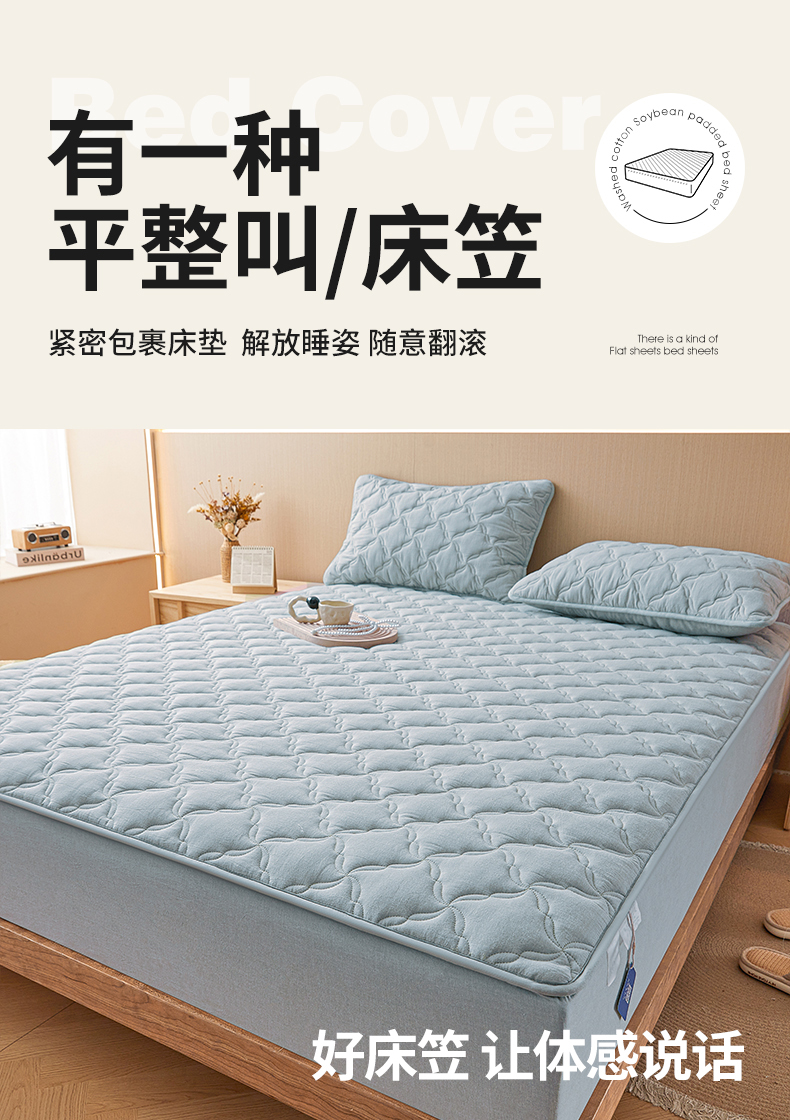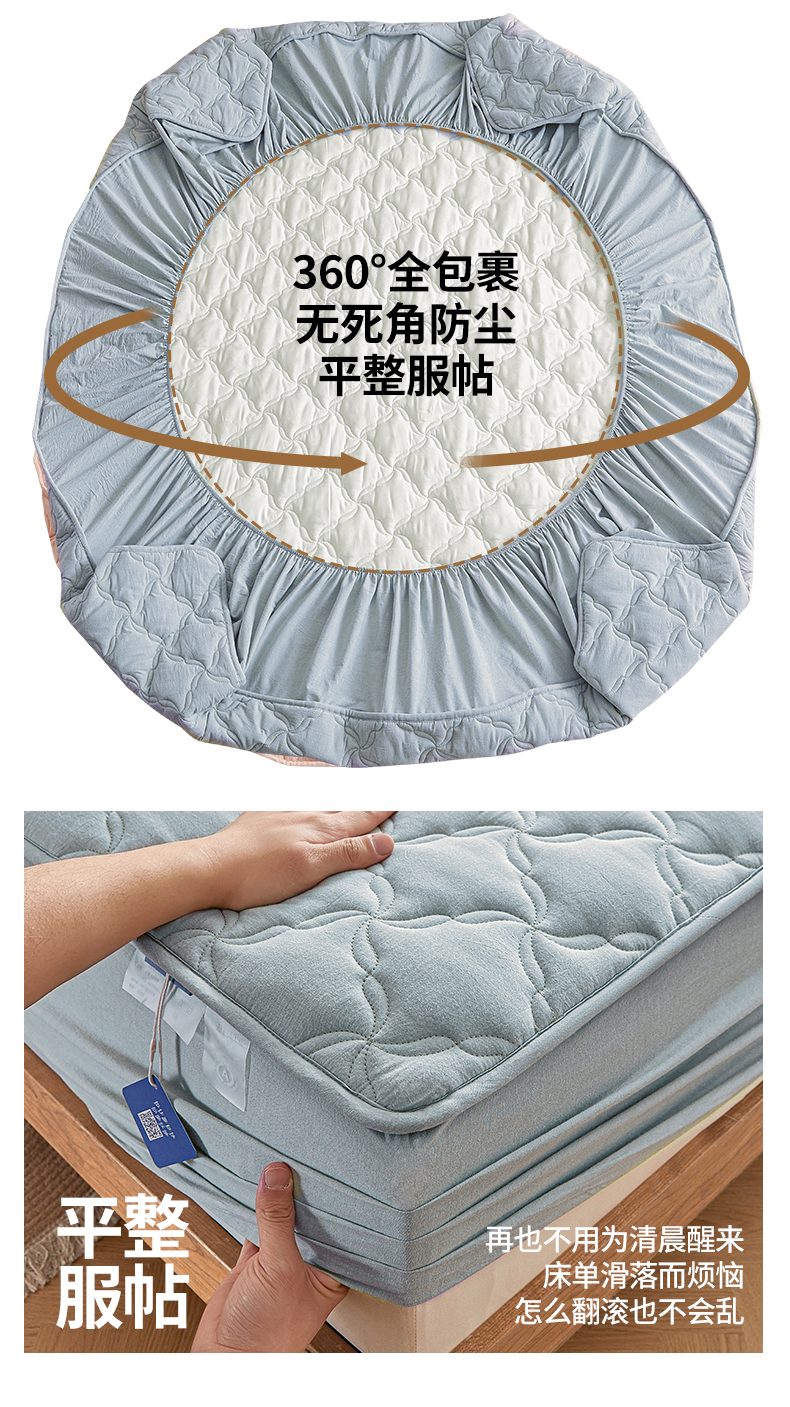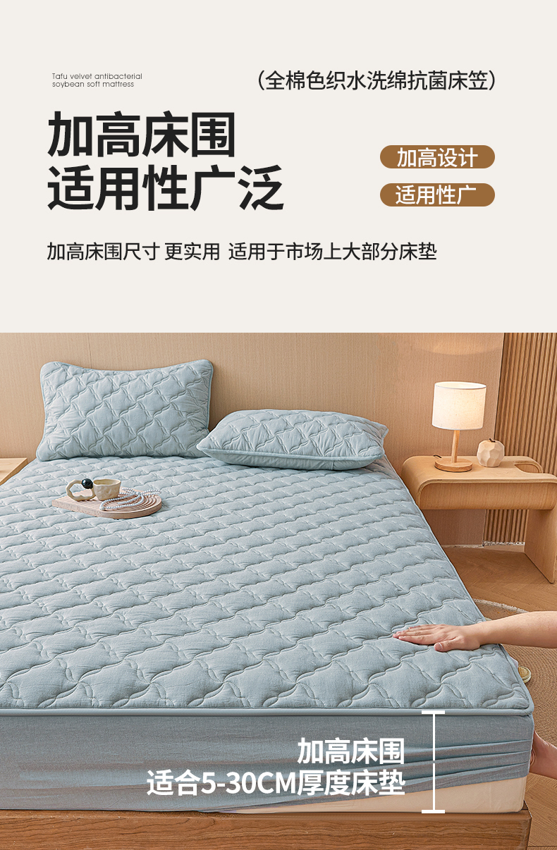 • 91家纺网 家纺一手货源 找家纺 3C 2024新款全棉色织水洗绵抗菌床笠 浅蓝色