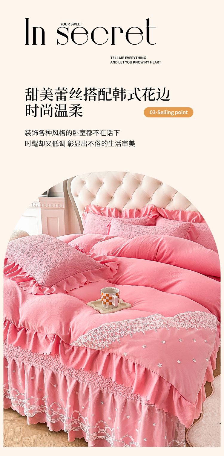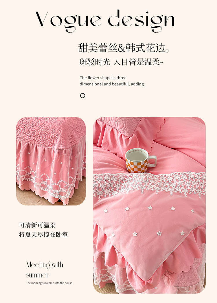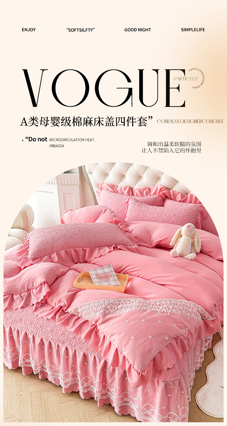 (总)2025春夏新款A类母婴级双层纱棉麻蕾丝花边床盖四件套—安妮系列