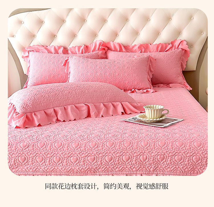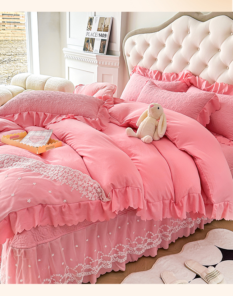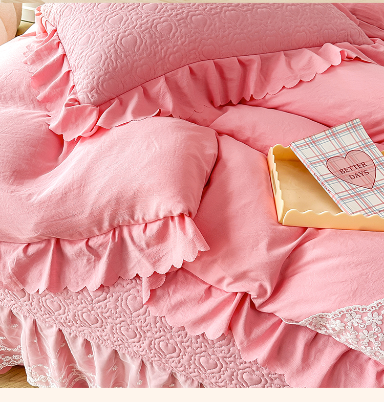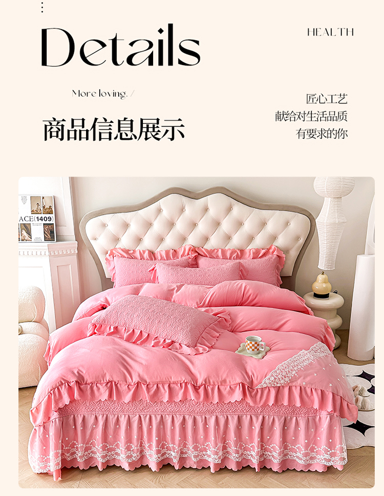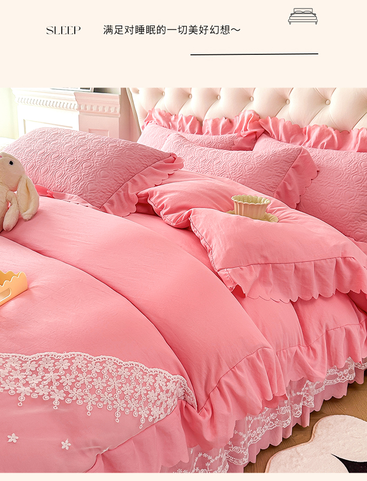 (总)2025春夏新款A类母婴级双层纱棉麻蕾丝花边床盖四件套—安妮系列