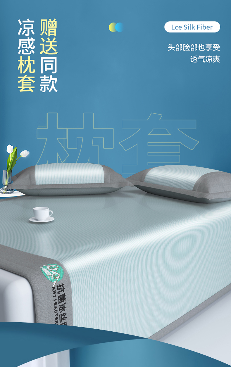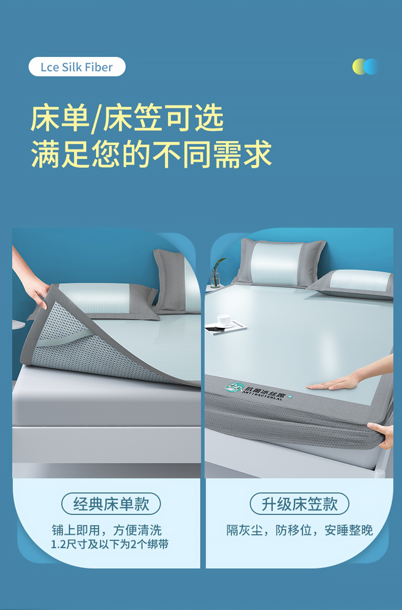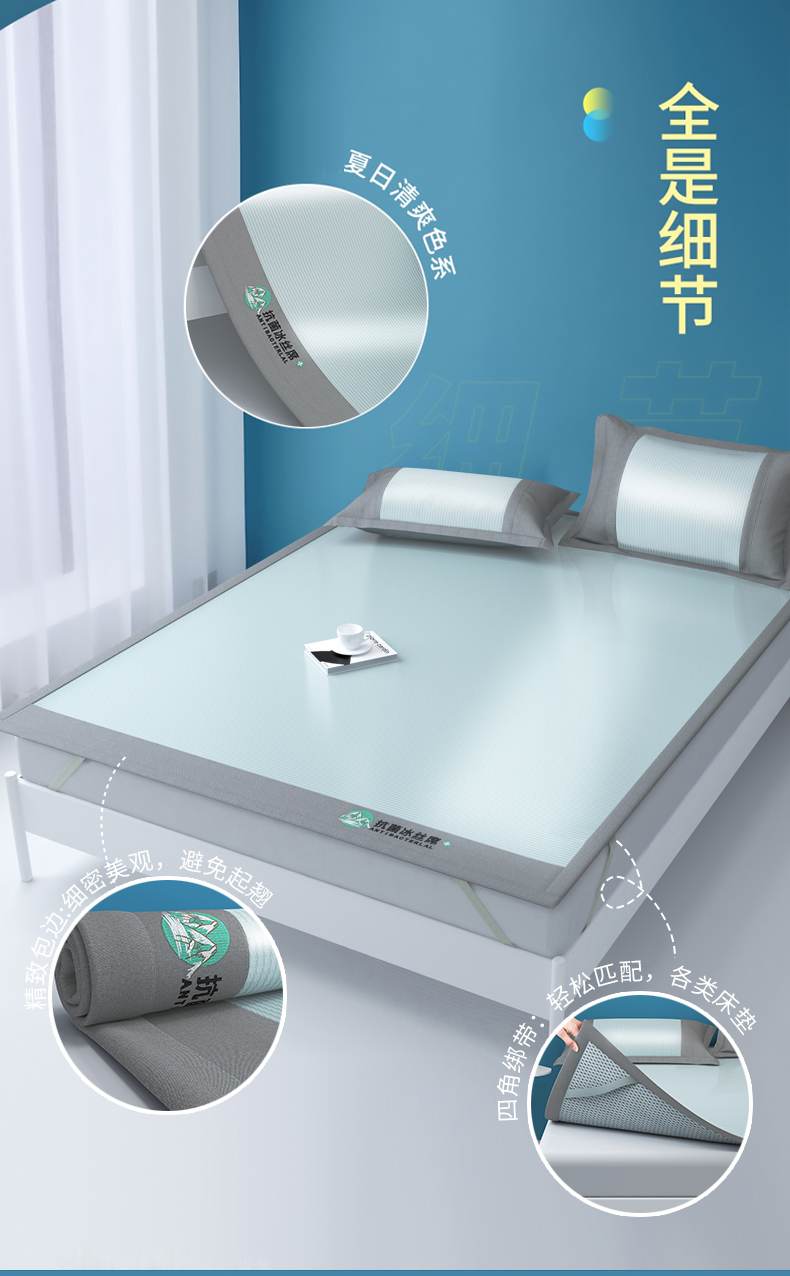 商品名称:yyds 2024新款高端冰丝凉席三件套床笠款软藤席冰丝席空调软席子 床席绑定款雪山-绿