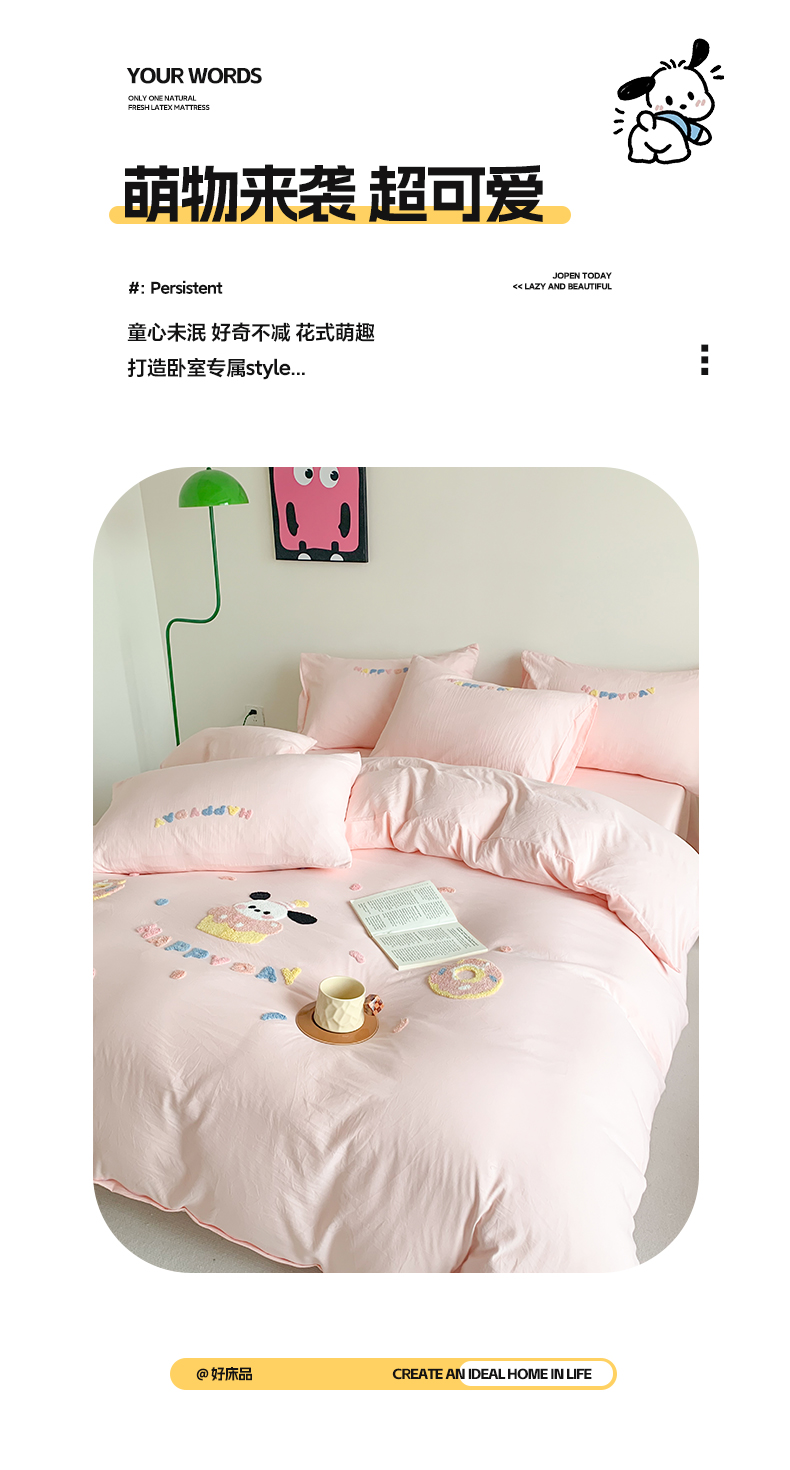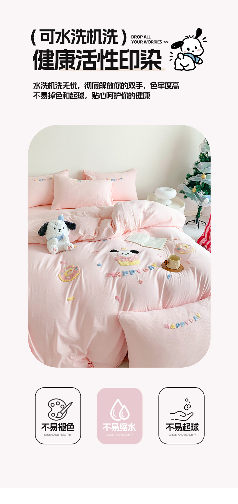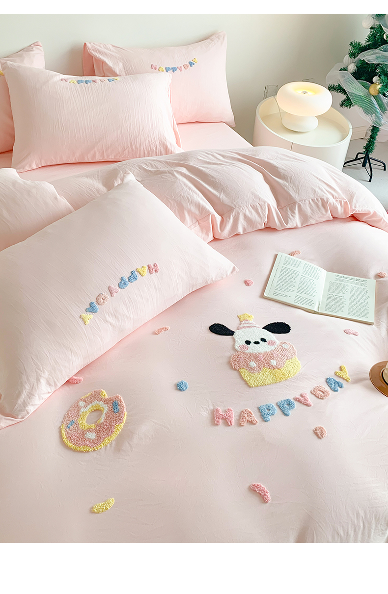 当前位置: 91家纺网 > 商品网购 > 床品套件 > 四件套 > 其它四件套 > 凯儿2024新款水洗棉卡通毛巾绣四件套-专版花型 甜圈狗狗粉