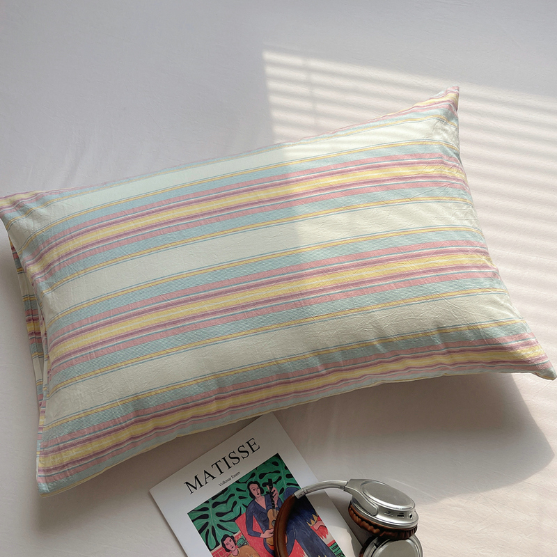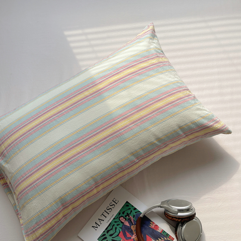 艾咪 2024新款全棉色织水洗棉单品-枕套 塞约黄粉