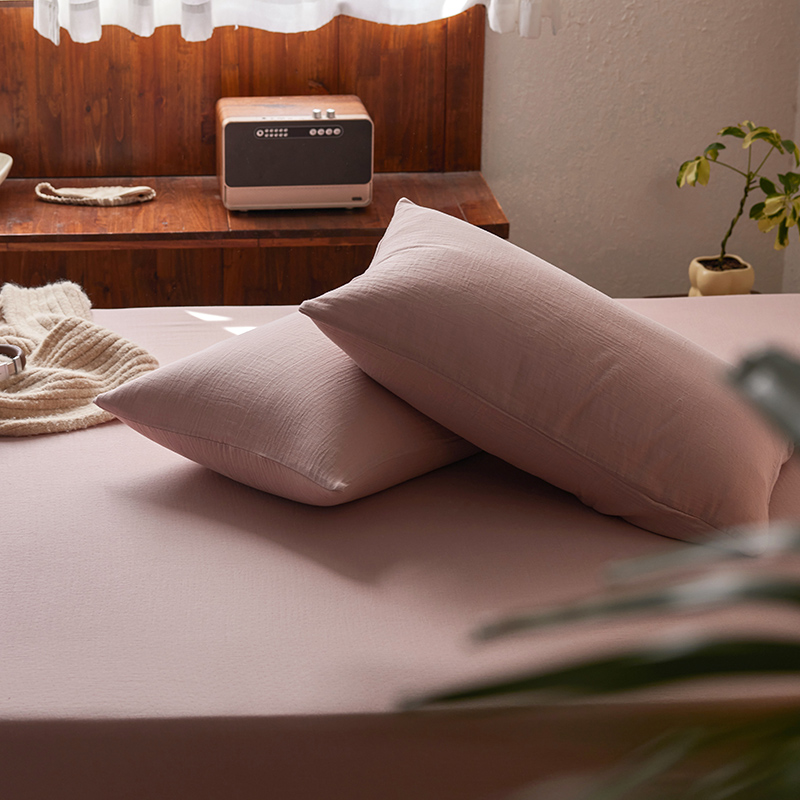 商品名称:简纯主义 2025新款全棉有机雾感纱双层皱皱纱系列单枕套 春日桃桃