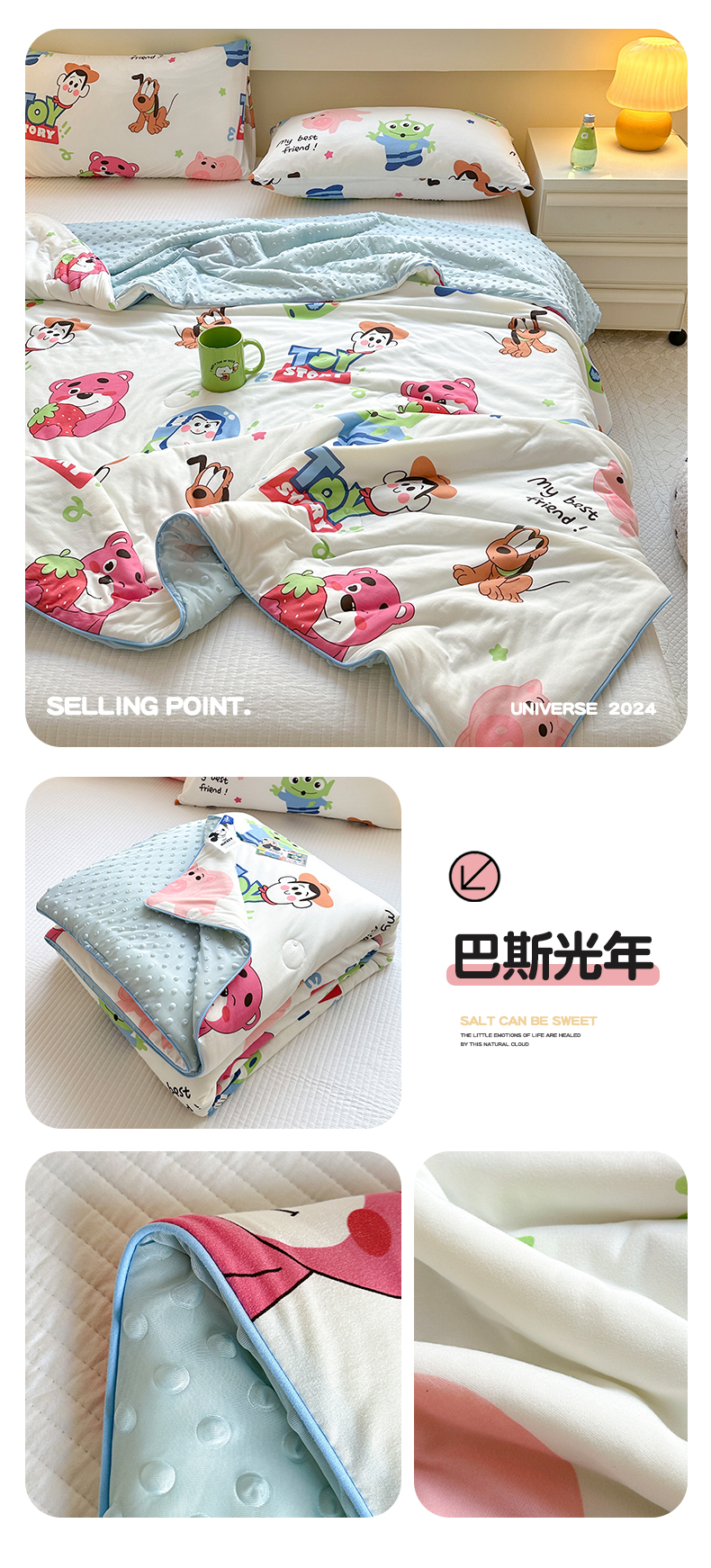 商品名称:木堇家居 2024新款正版迪士尼授权卡通A类针织凉豆豆印花夏被 巴斯光年