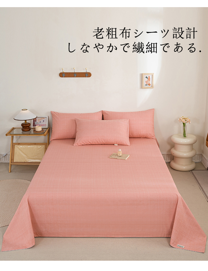 九沐良品 新款全棉无印老粗布单品床单+三件套 樱花(粉)