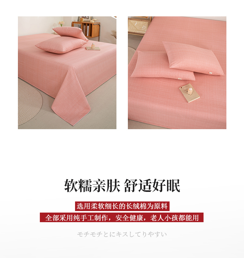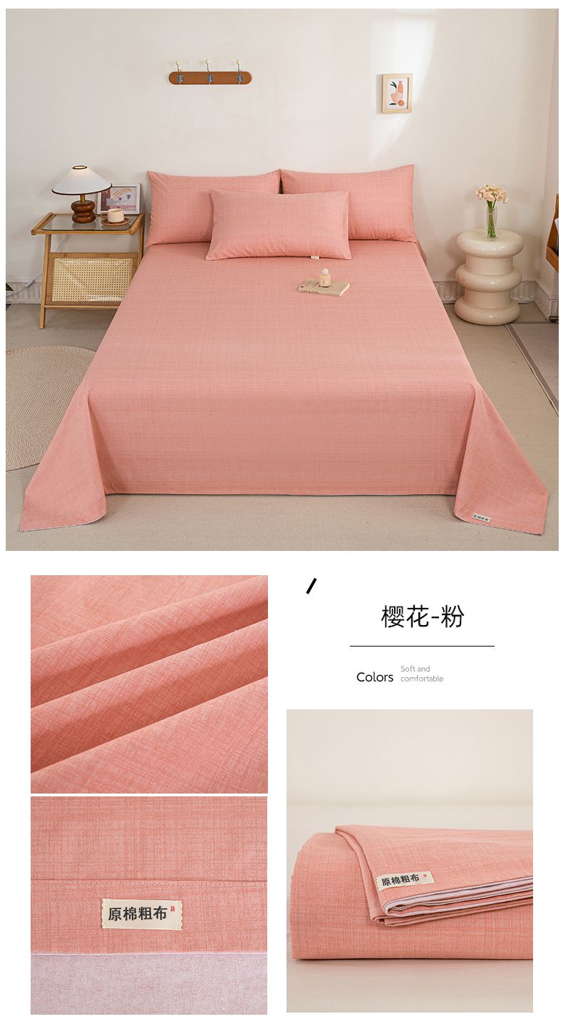 • 91家纺网 家纺一手货源 找家纺 九沐良品 新款全棉无印老粗布单品床单+三件套 樱花(粉)