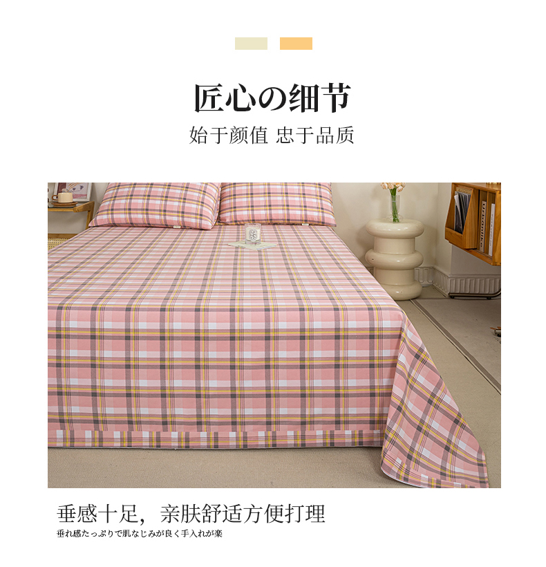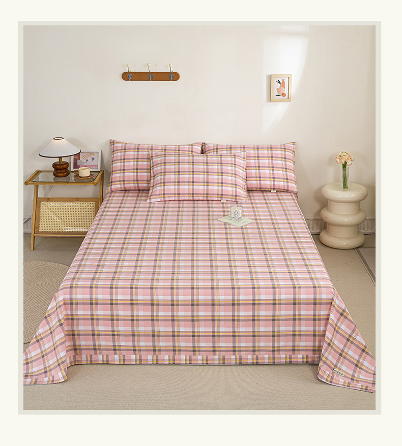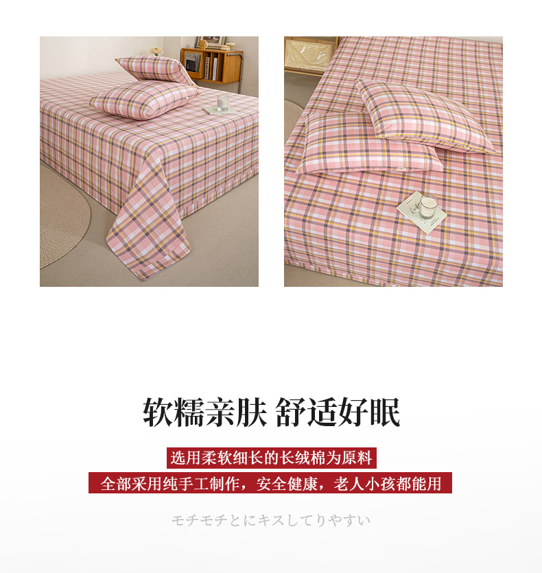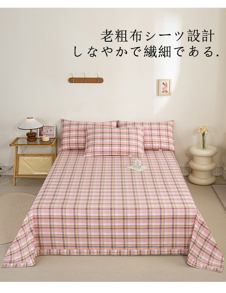 九沐良品 新款全棉无印老粗布单品床单+三件套 莫妮卡(粉)