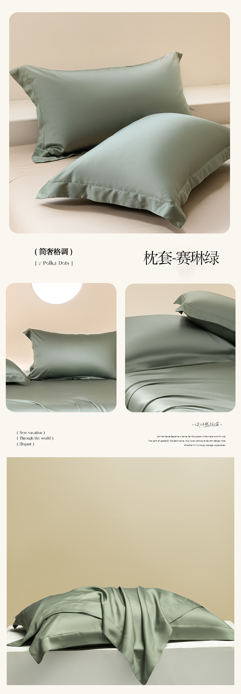 商品名称:涵宸 2024新款兰精天丝棉纯色单品-枕套 枕套-赛琳绿