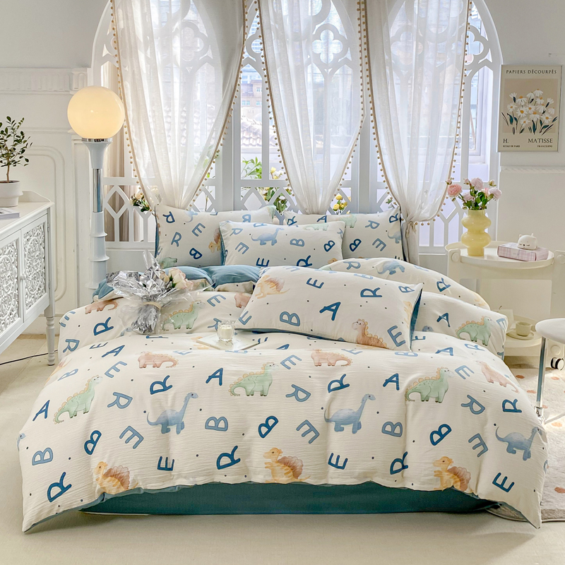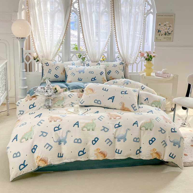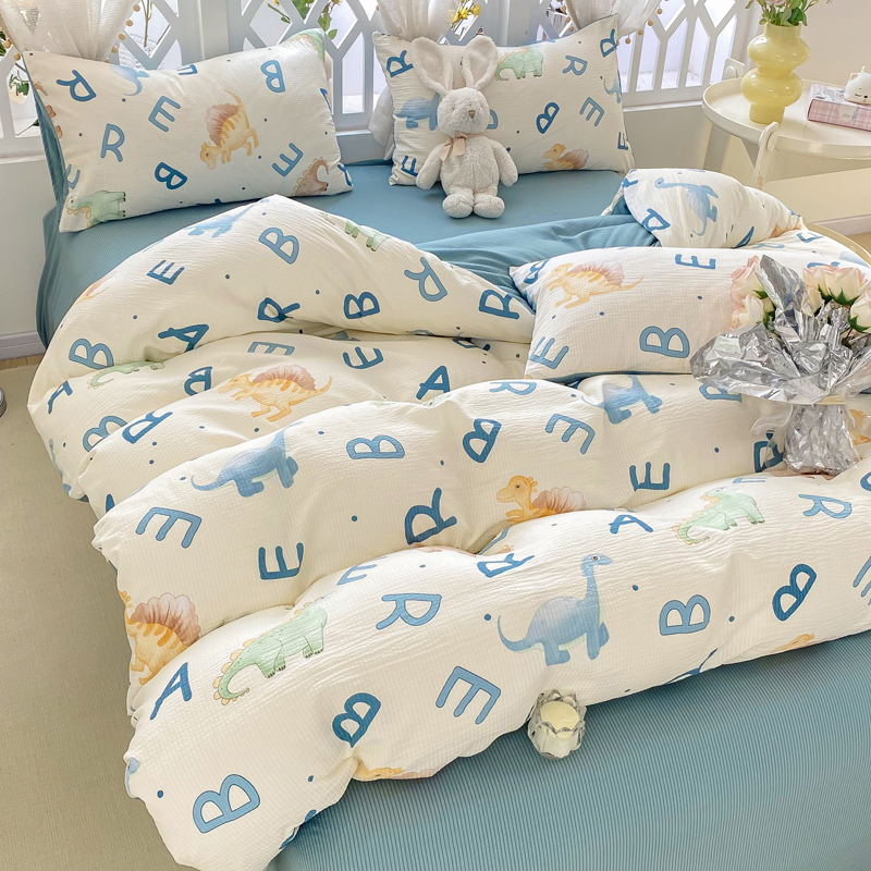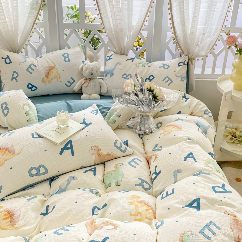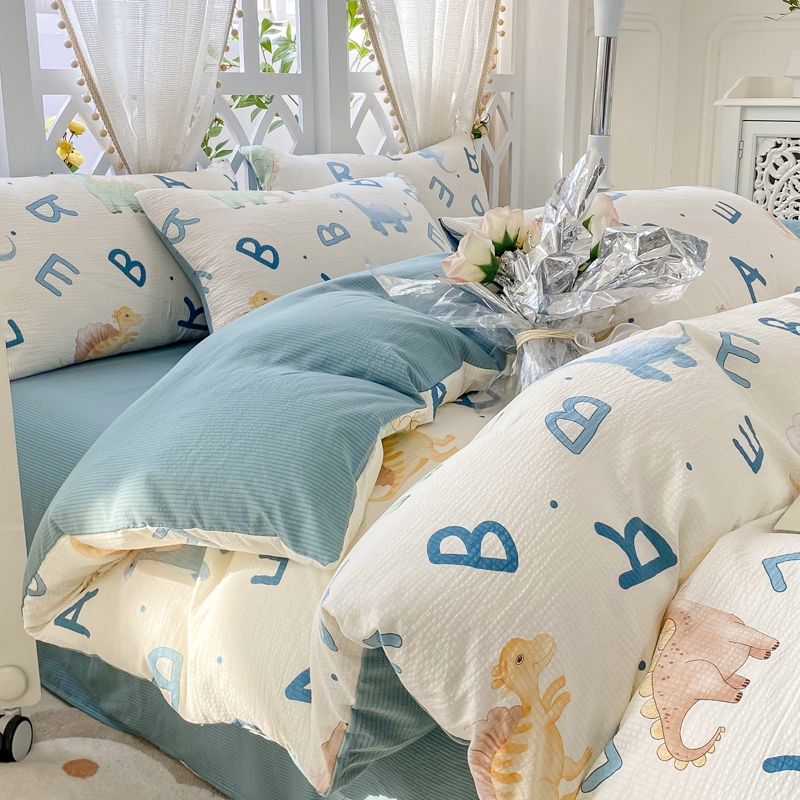当前位置: 91家纺网 > 商品网购 > 床品套件 > 四件套 > 其它四件套 > 牛牛家纺 牛牛 2024新款泡泡棉小清新四件套(1) 字母恐龙