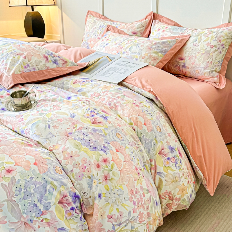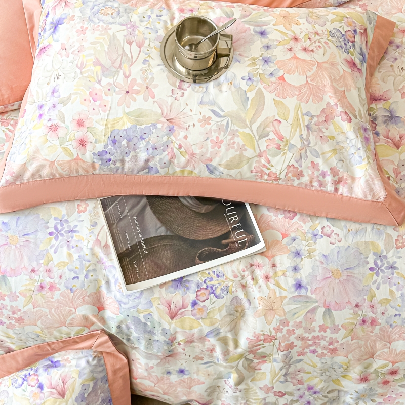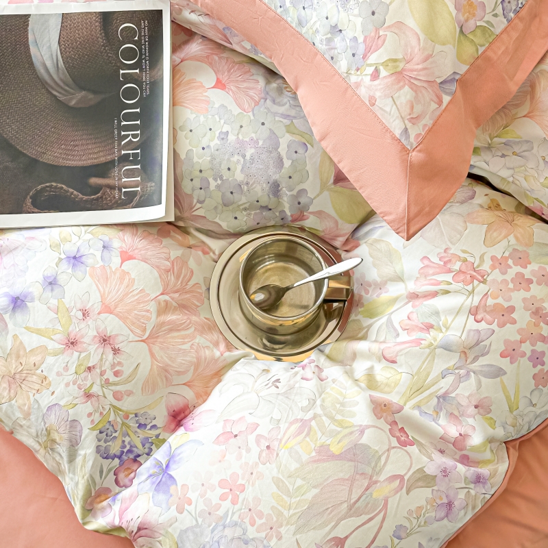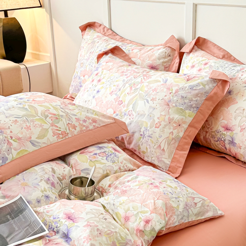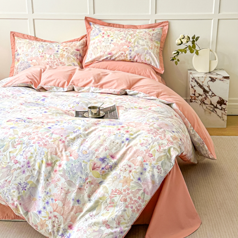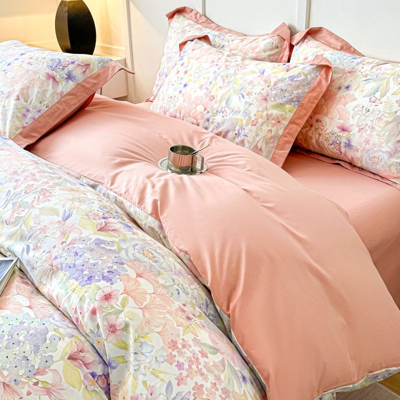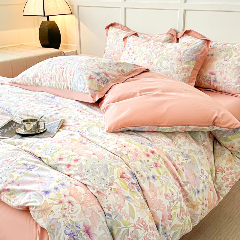 棉生活 2024新款铂金棉高支数码印花四件套 盛夏光景 粉