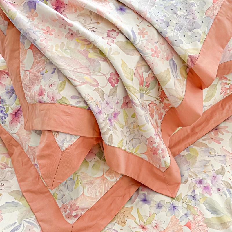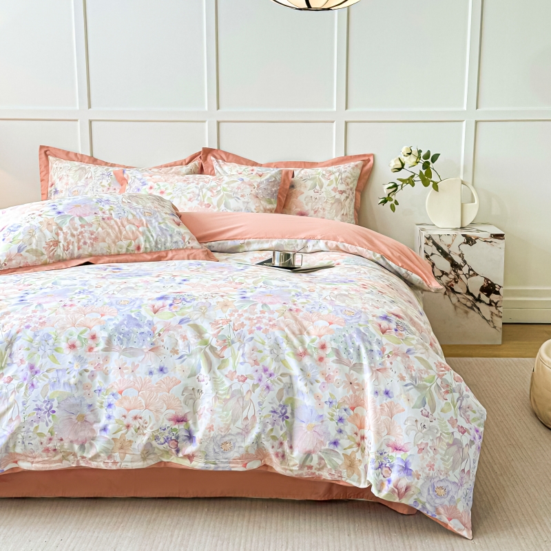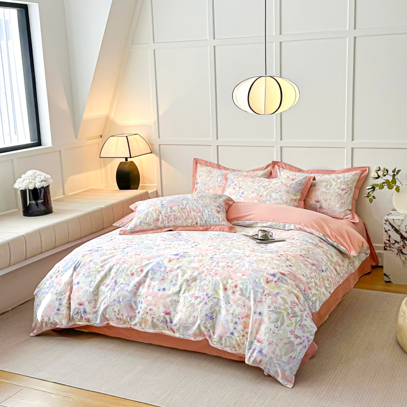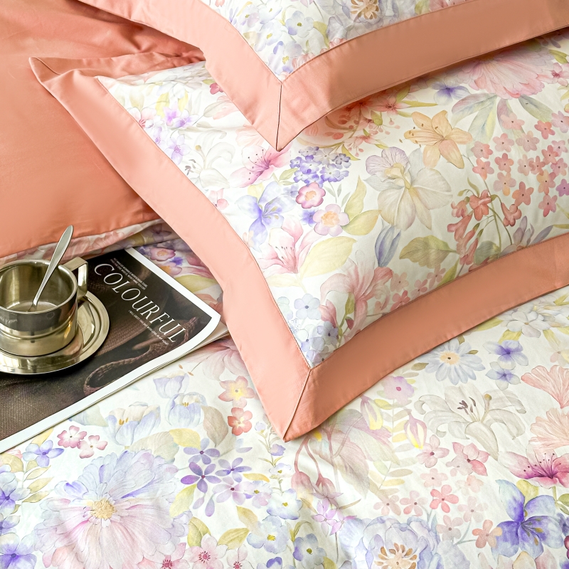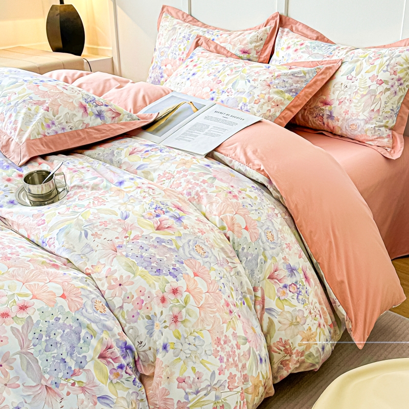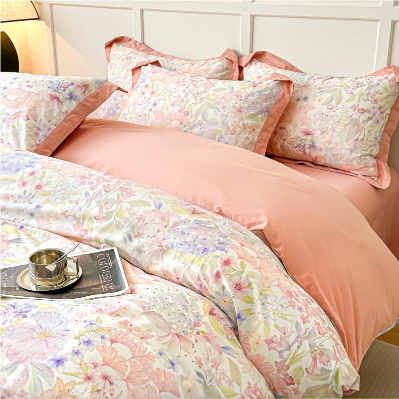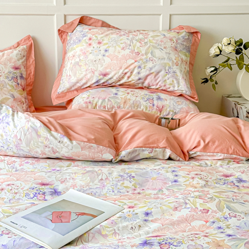 棉生活 2024新款铂金棉高支数码印花四件套 盛夏光景 粉