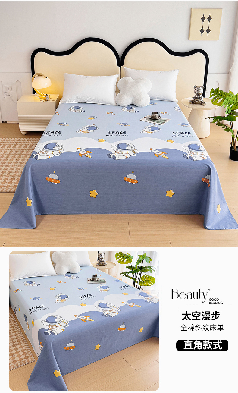 情煊家纺 2024新款全棉斜纹直角床单系列-印花款 太空漫步