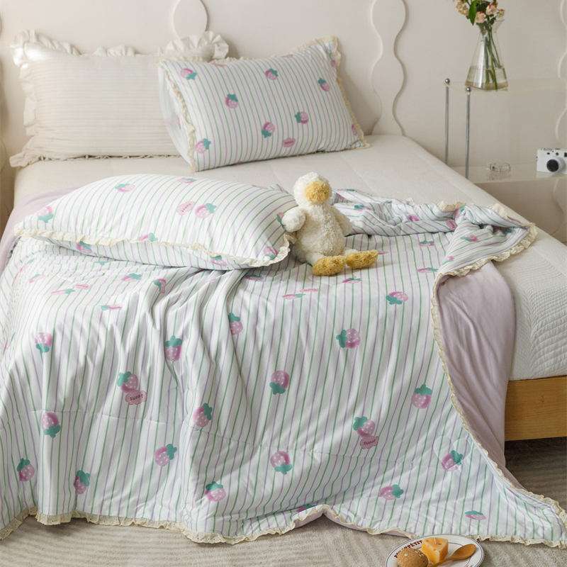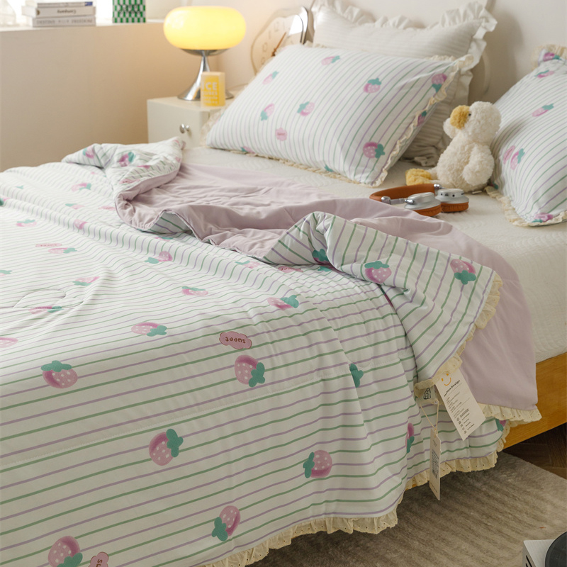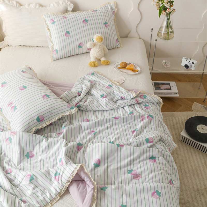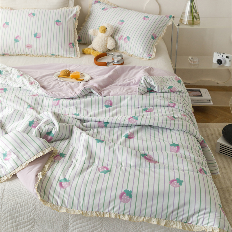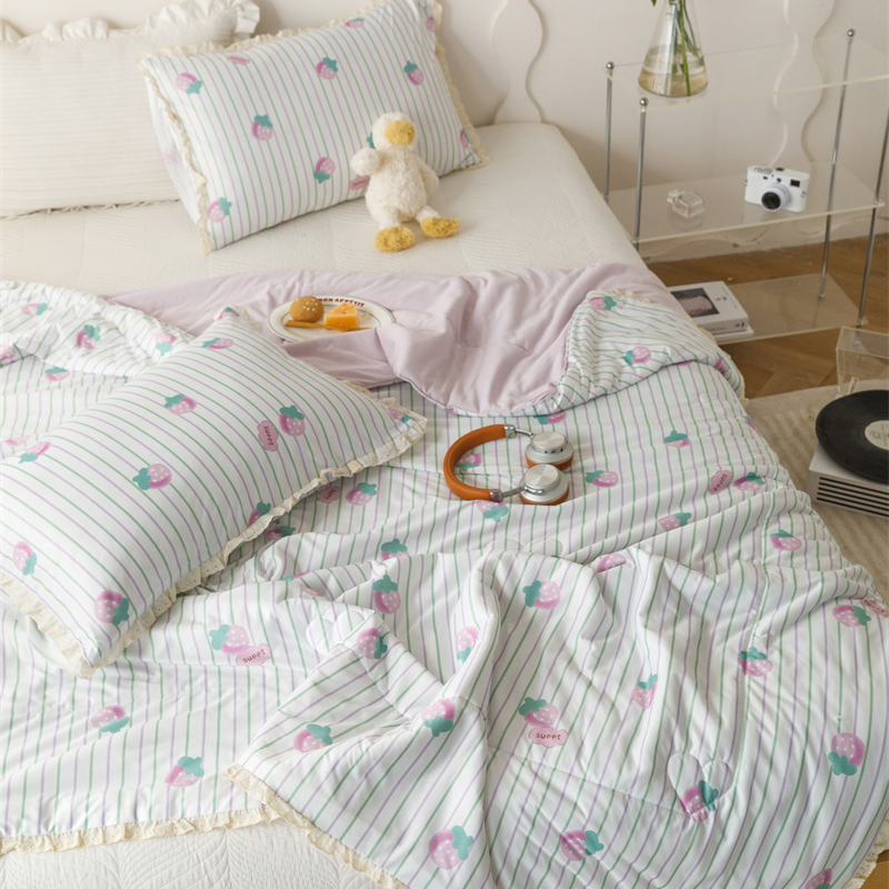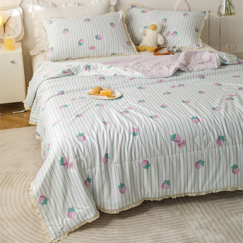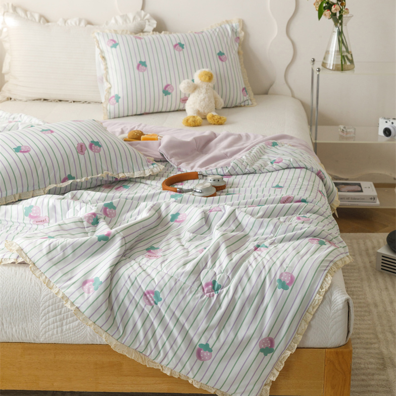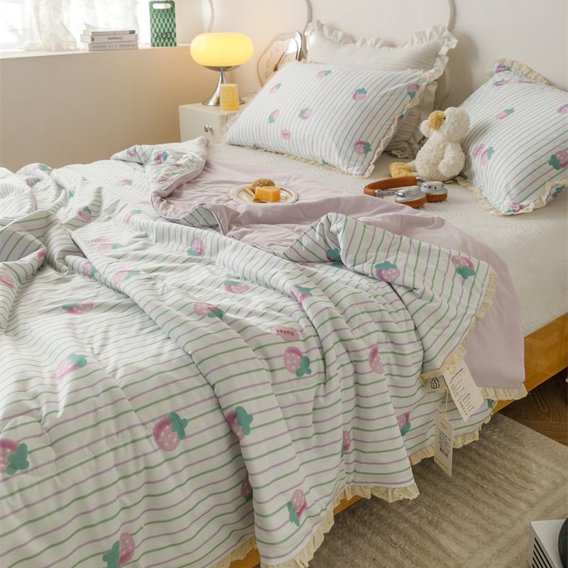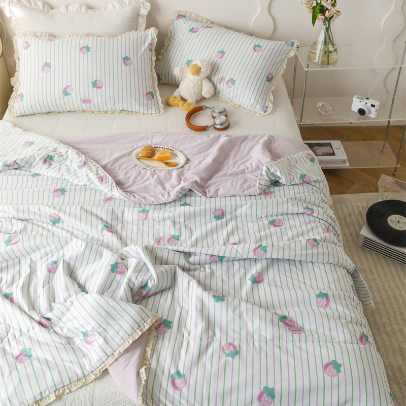 有货 2024新款春夏新款法式针织棉印花夏被春秋被 甜草莓