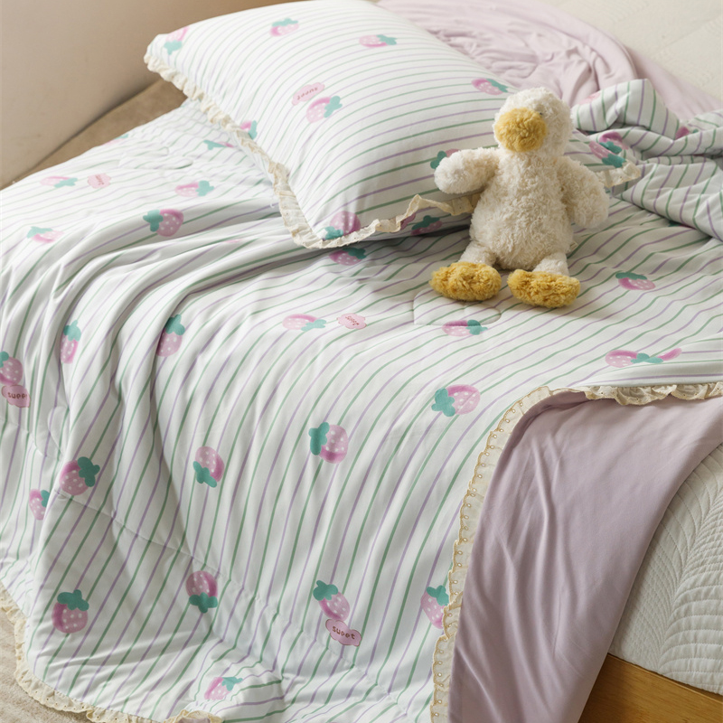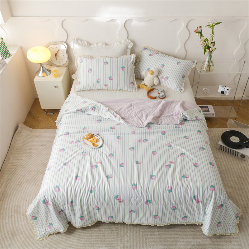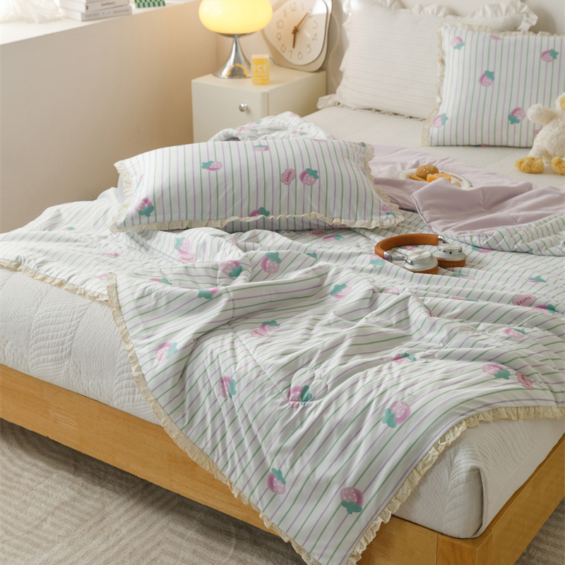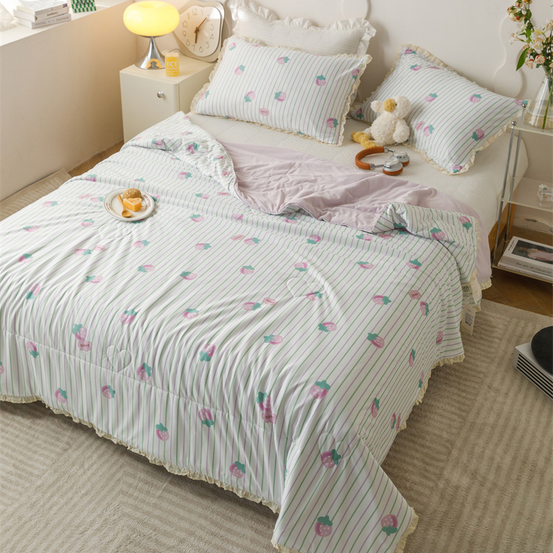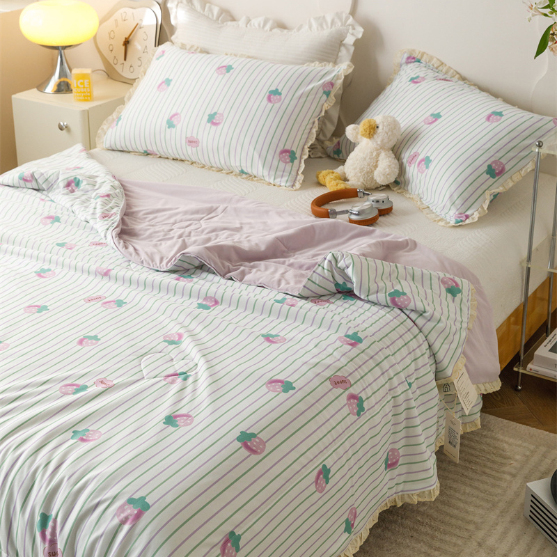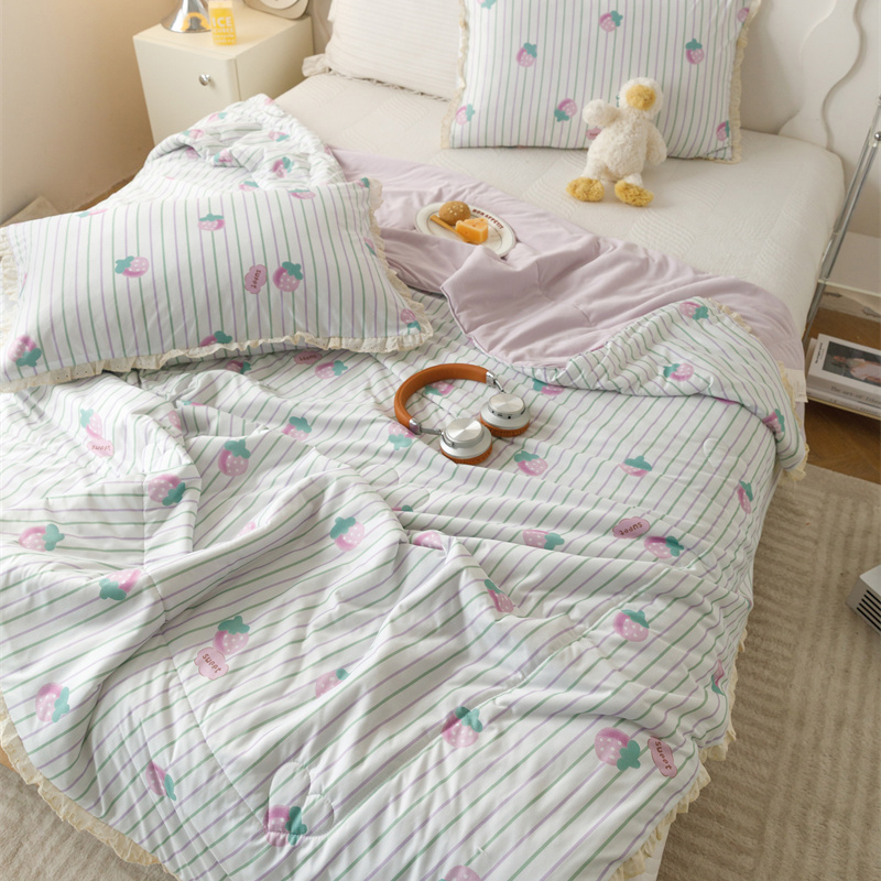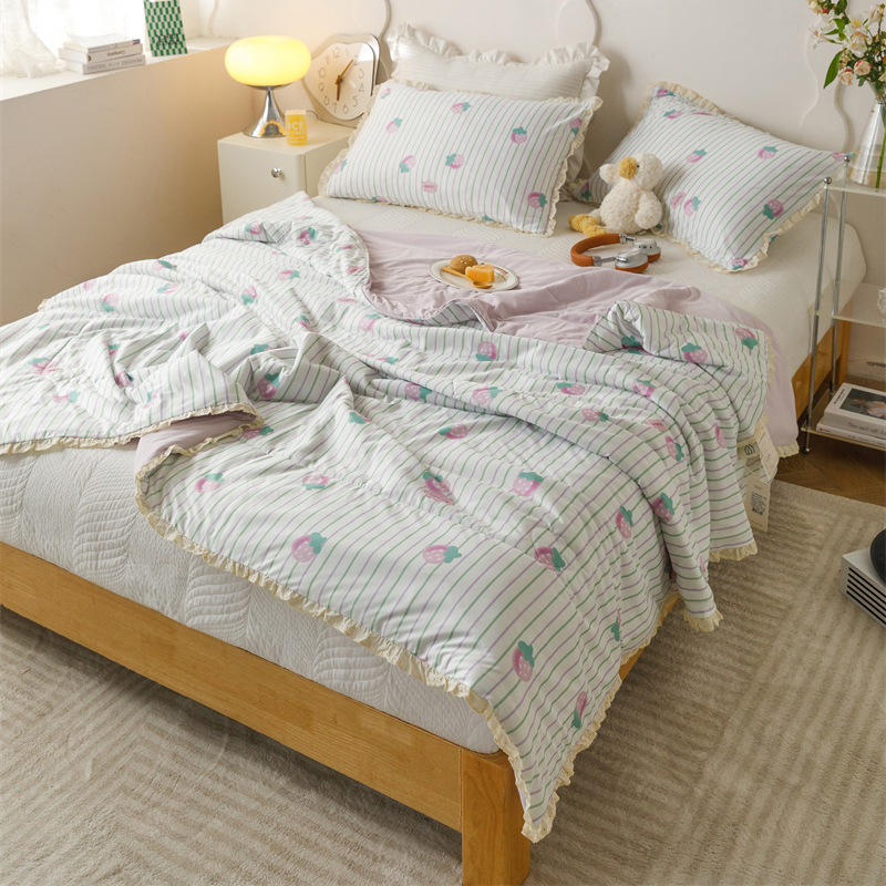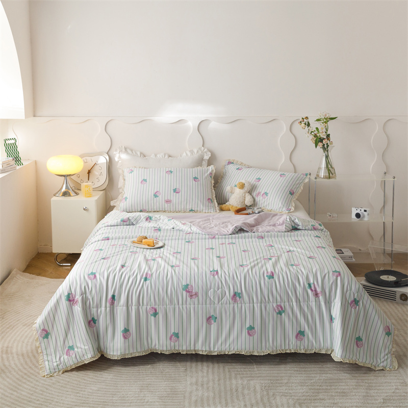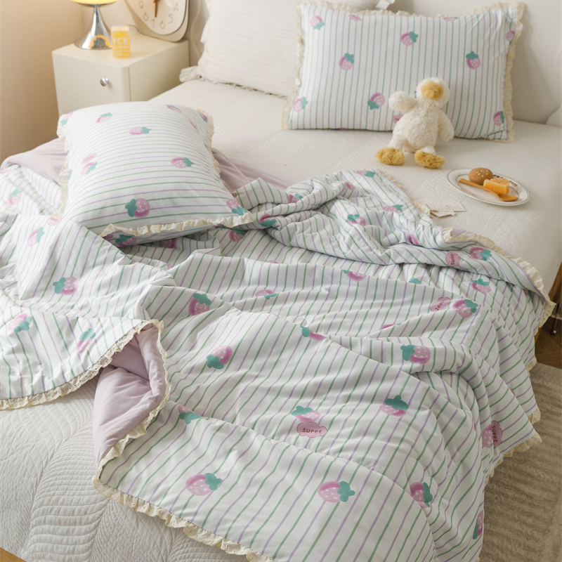 有货 2024新款春夏新款法式针织棉印花夏被春秋被 甜草莓