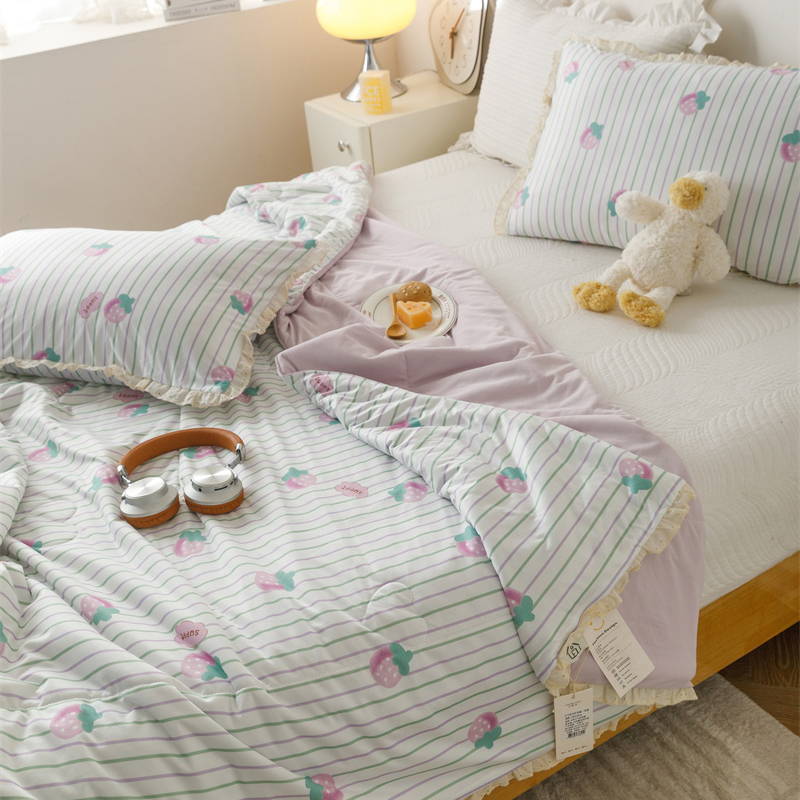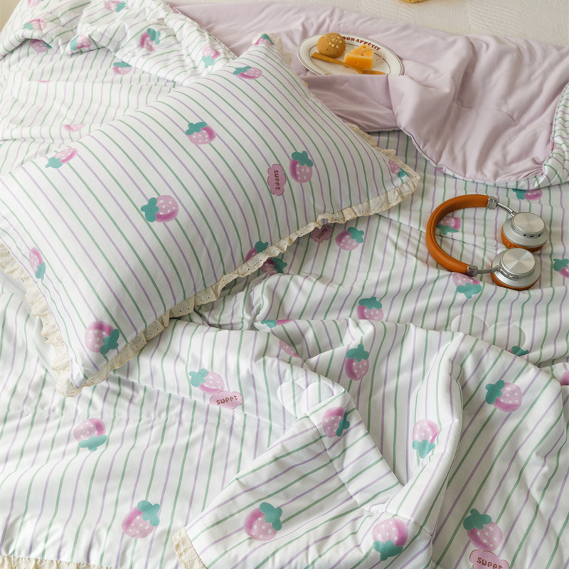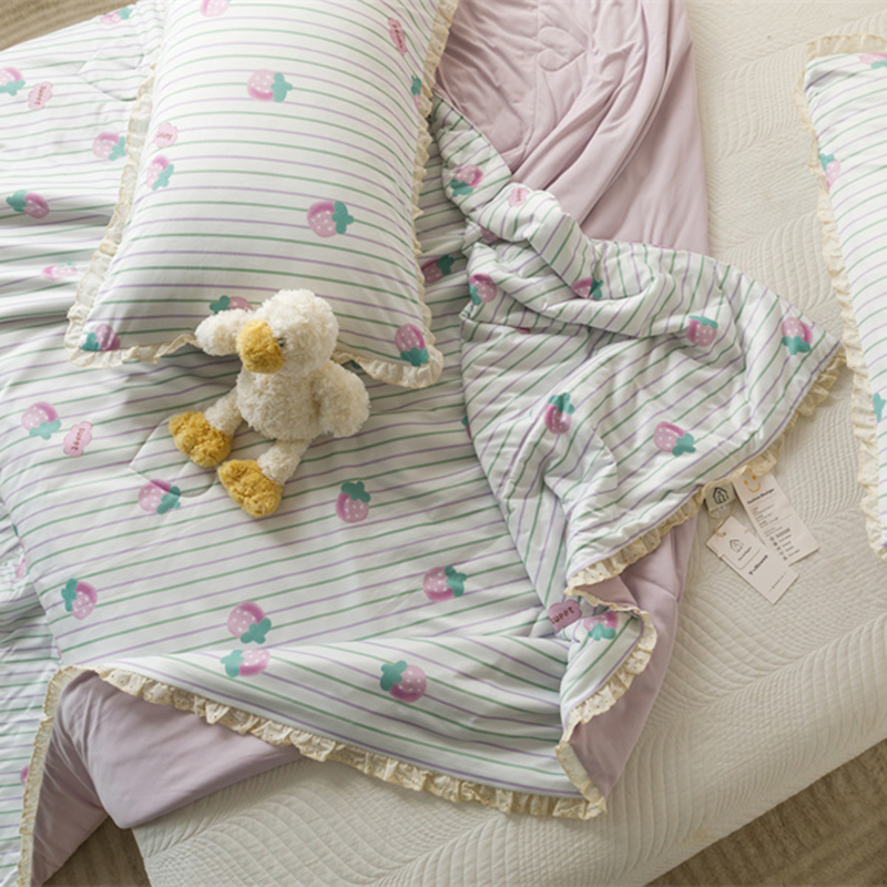 商品名称:有货 2024新款春夏新款法式针织棉印花夏被春秋被 甜草莓