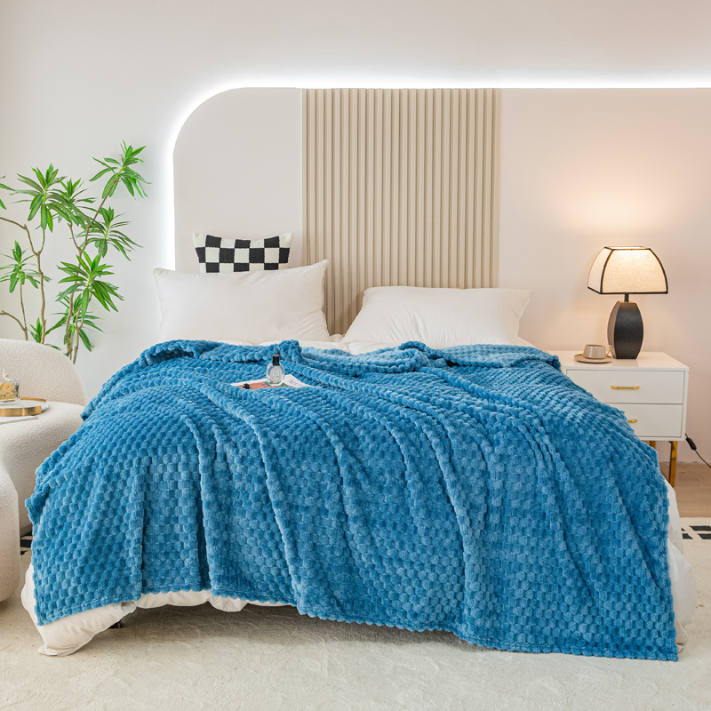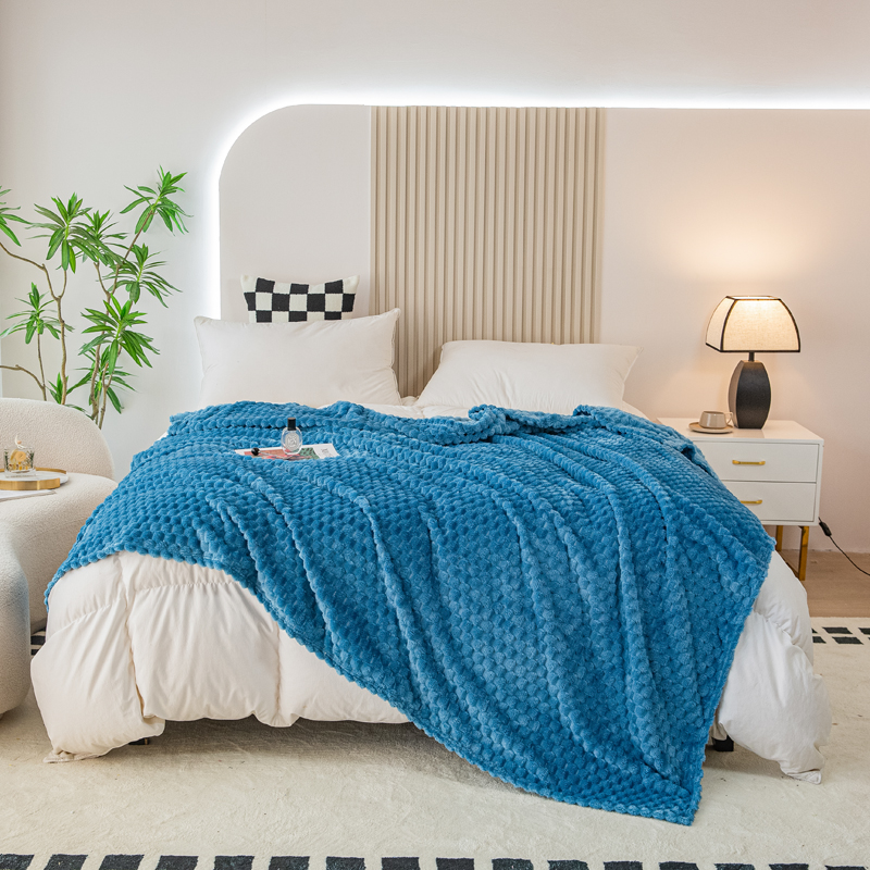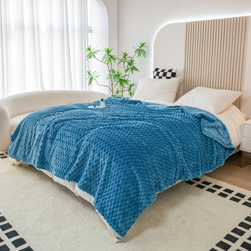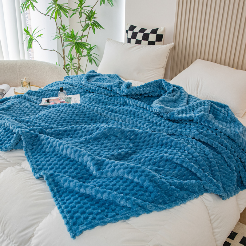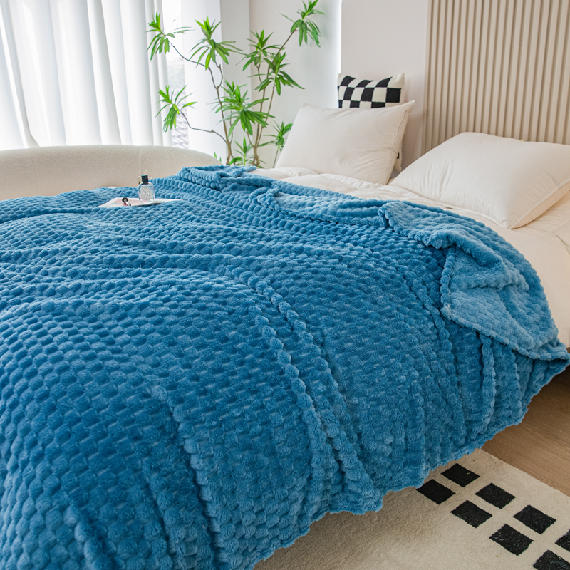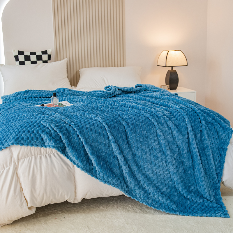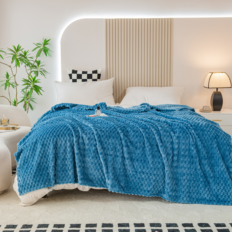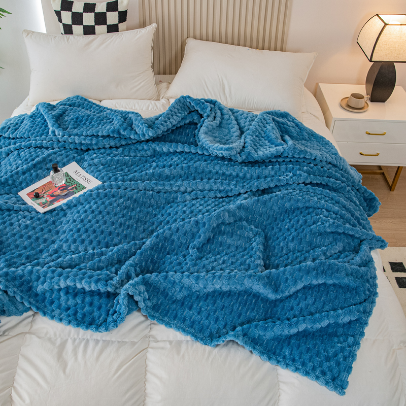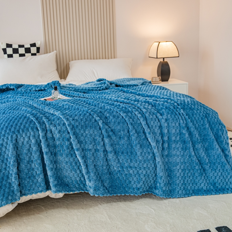商品名称:卡琪曼 2025新款高克重金龟绒牛奶绒毛毯毯子 蓝色