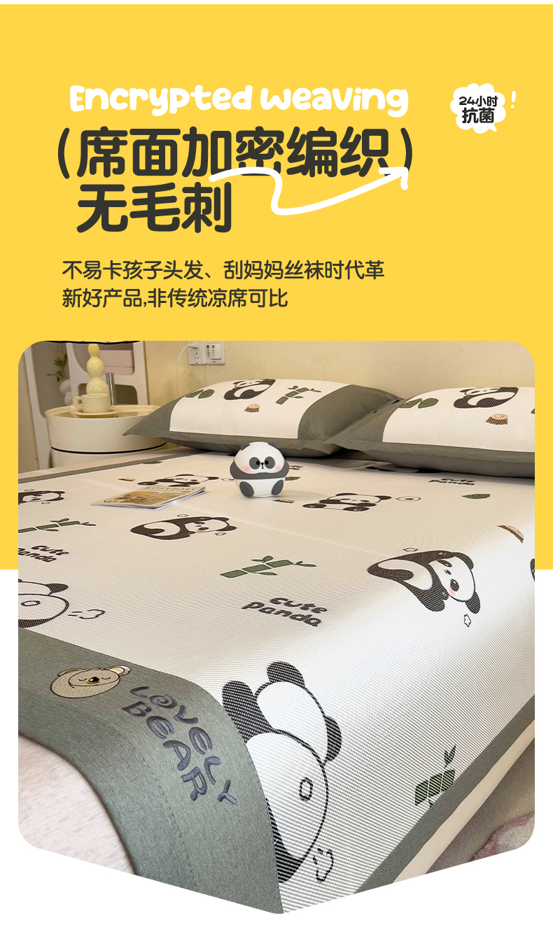 当前位置: 91家纺网 > 商品网购 > 床上用品 > 凉席 > 其他凉席 > 全季家居 2024新款A类抗菌数码印花冰藤席三件套 床席款-贪吃熊猫
