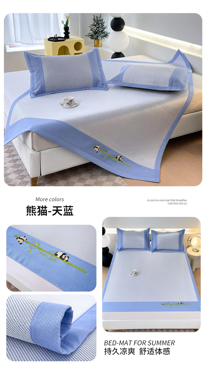 莱米家纺 2024新款冰藤席 熊猫-天蓝
