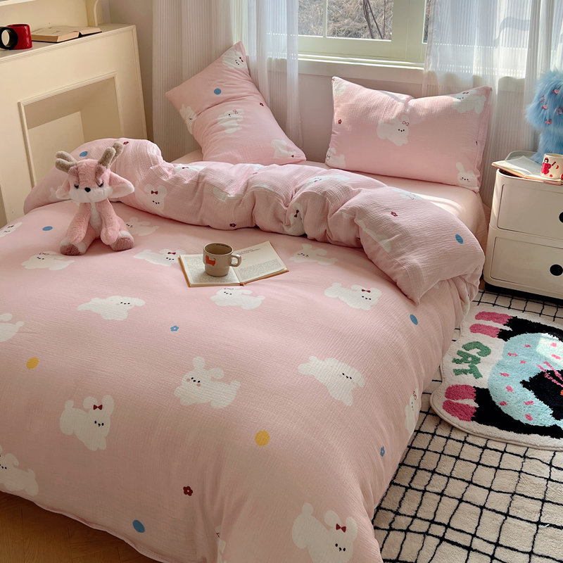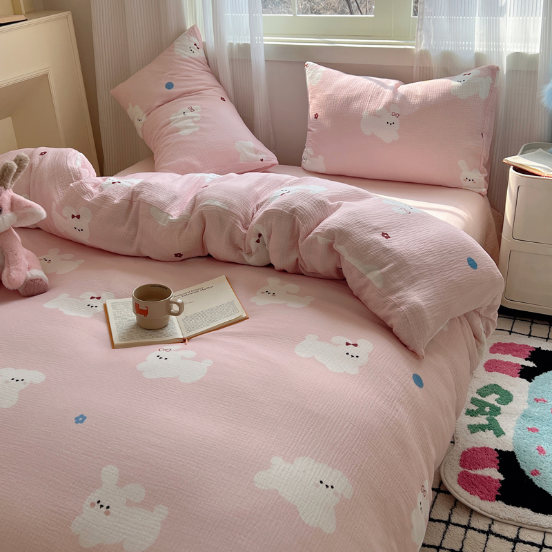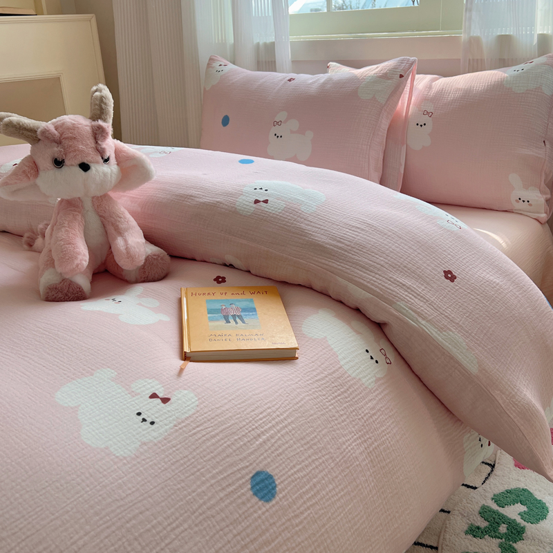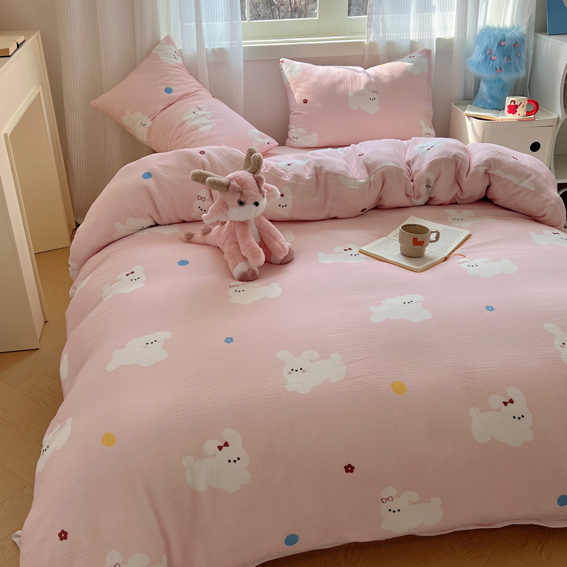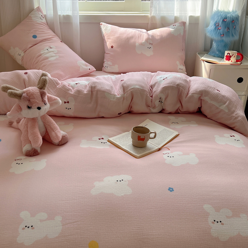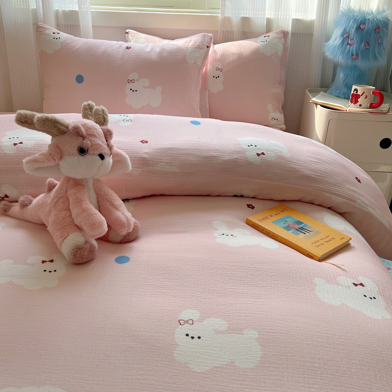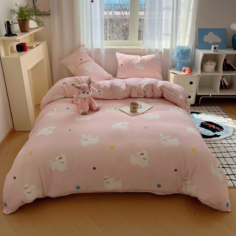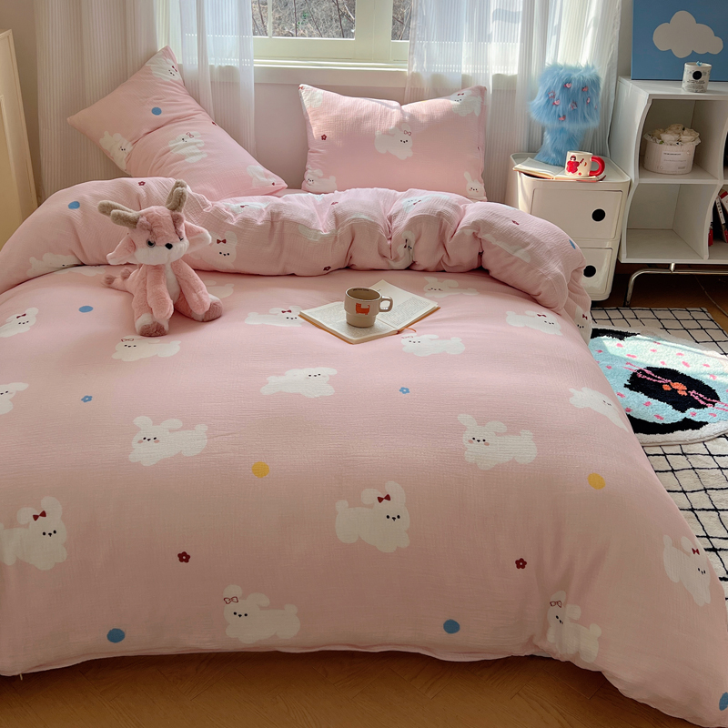 当前位置: 91家纺网 > 商品网购 > 床品套件 > 四件套 > 水洗棉四件套 > 盼季 2024新款A类母婴级水洗棉床上用品四件套卡通儿童床单被套宿舍三件套 奔跑粉小兔