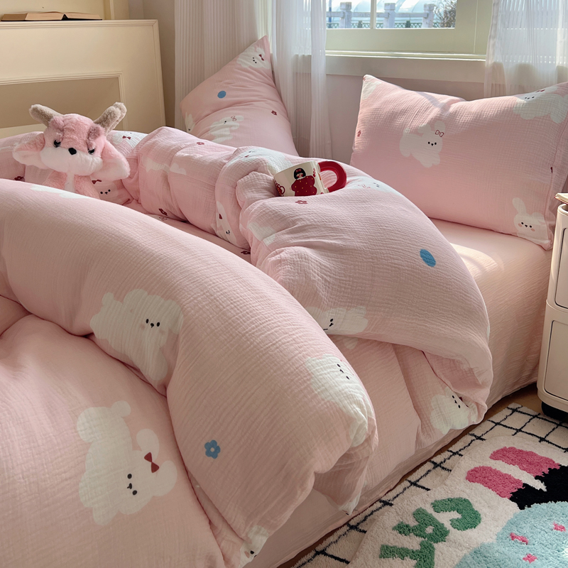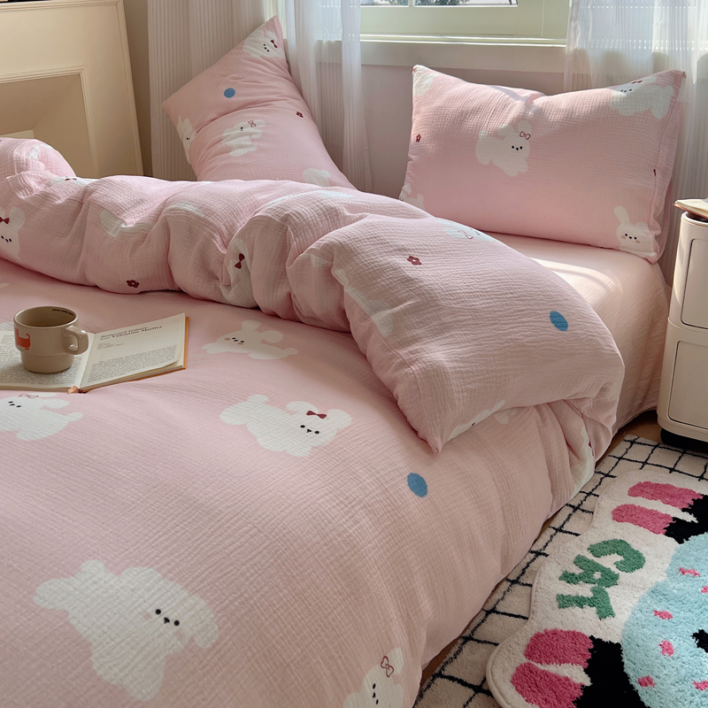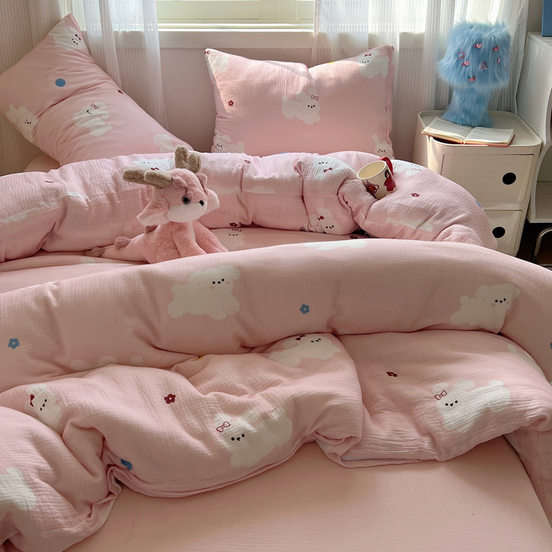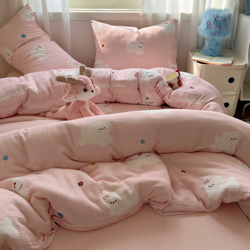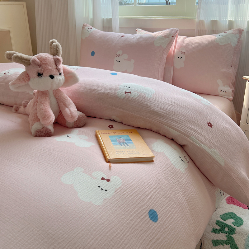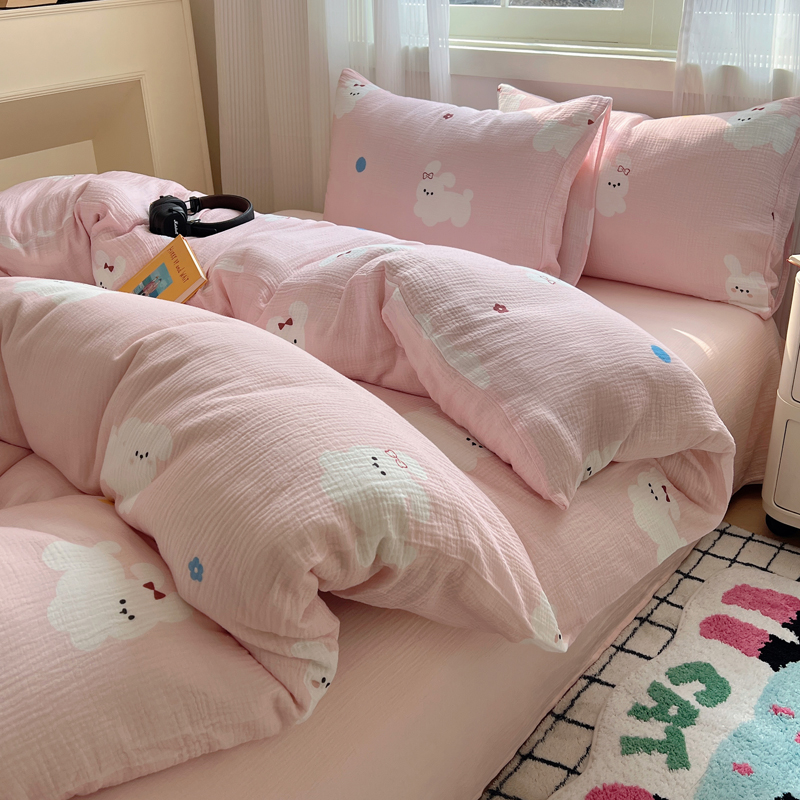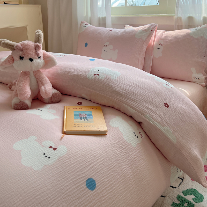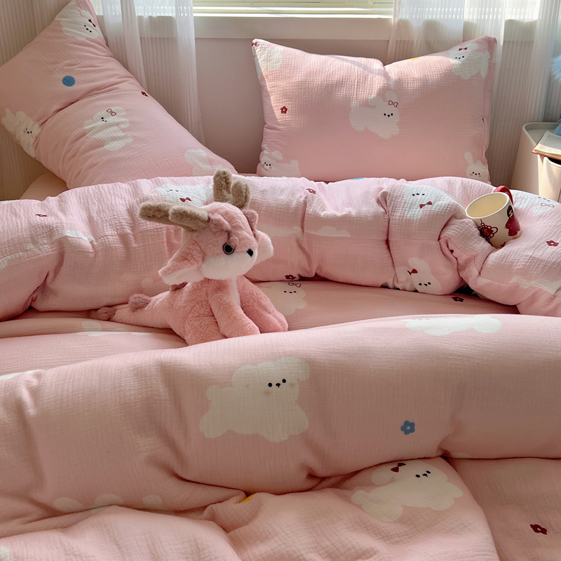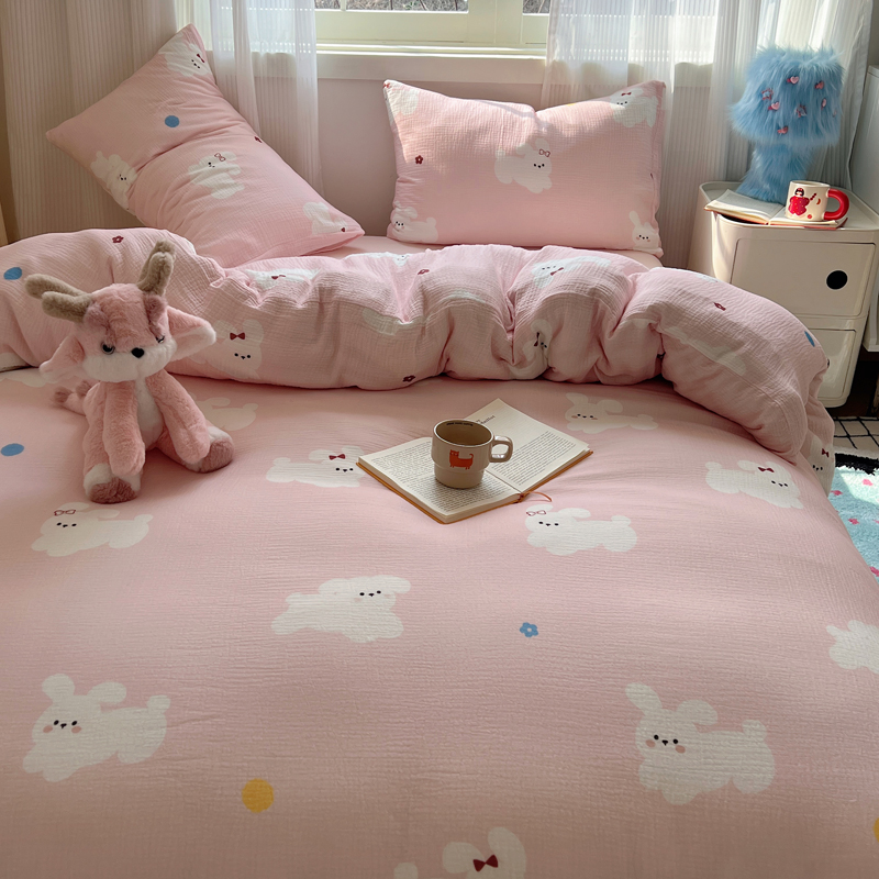 当前位置: 91家纺网 > 商品网购 > 床品套件 > 四件套 > 水洗棉四件套 > 盼季 2024新款A类母婴级水洗棉床上用品四件套卡通儿童床单被套宿舍三件套 奔跑粉小兔