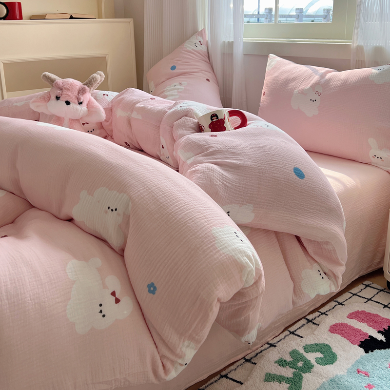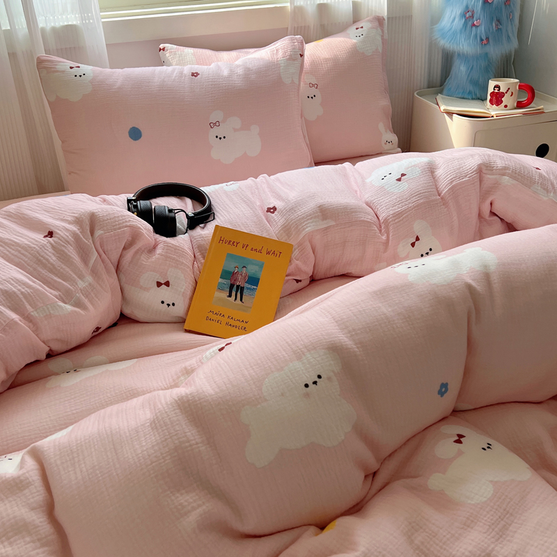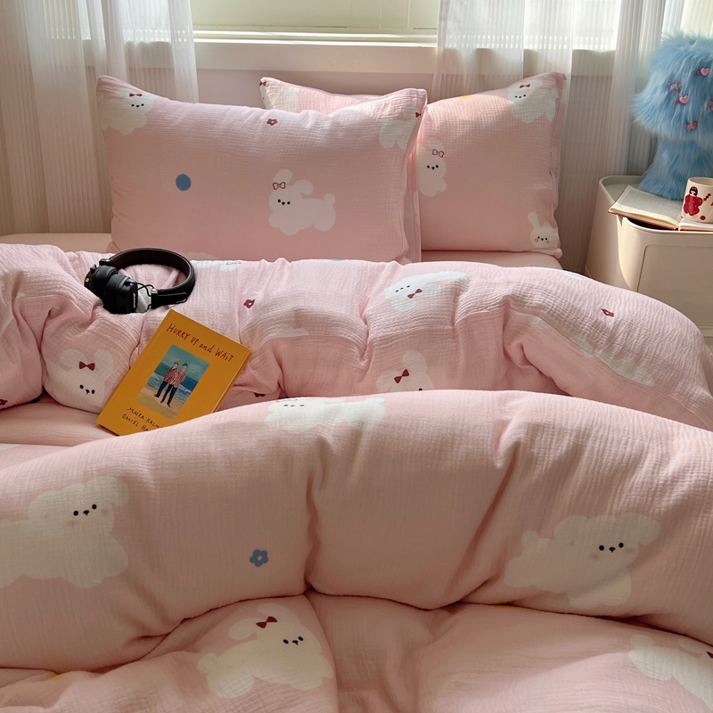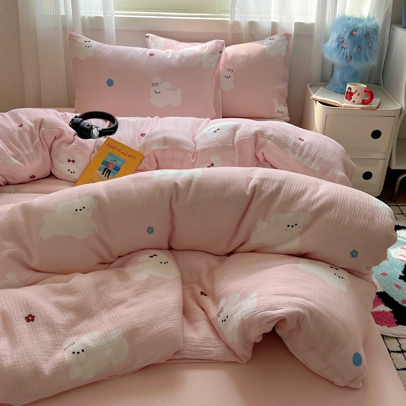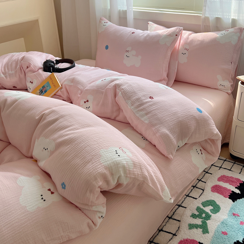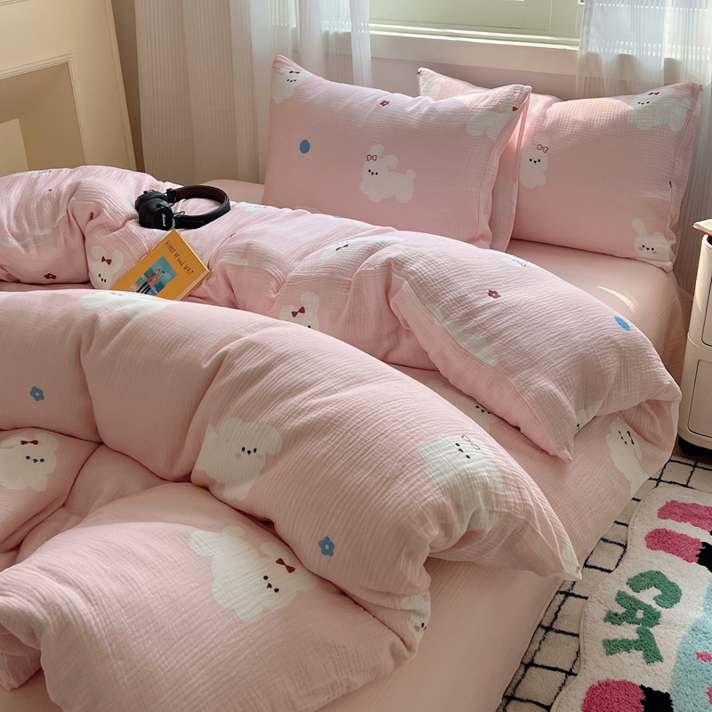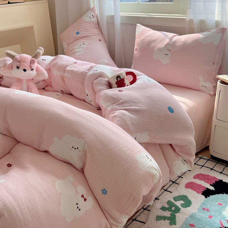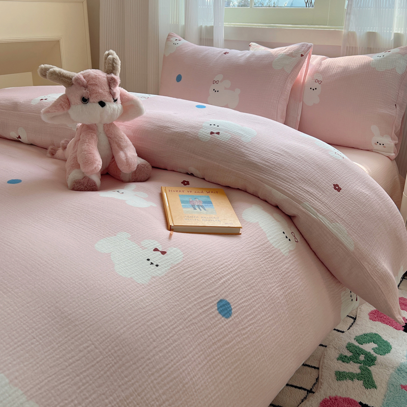 当前位置: 91家纺网 > 商品网购 > 床品套件 > 四件套 > 水洗棉四件套 > 盼季 2024新款A类母婴级水洗棉床上用品四件套卡通儿童床单被套宿舍三件套 奔跑粉小兔