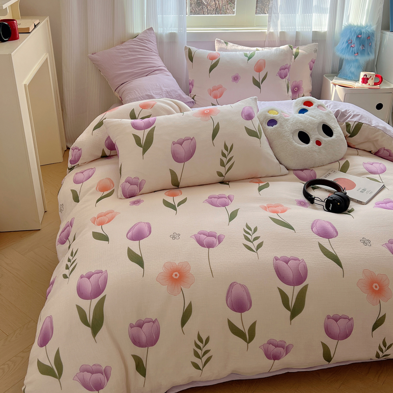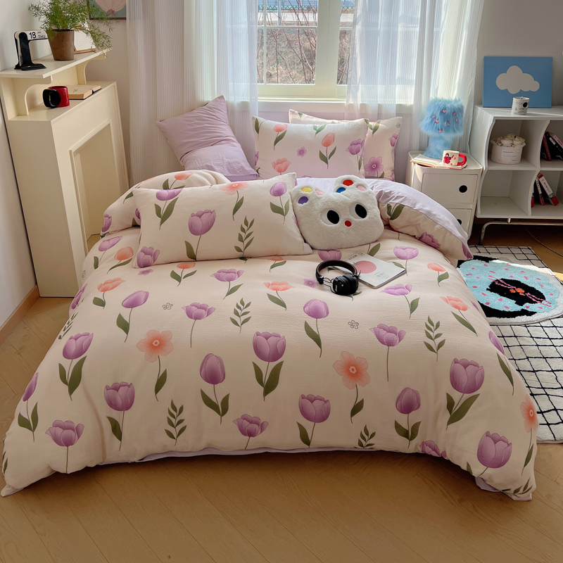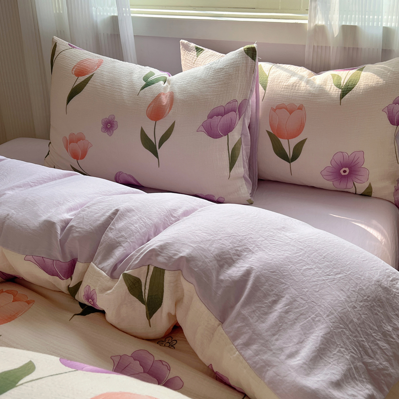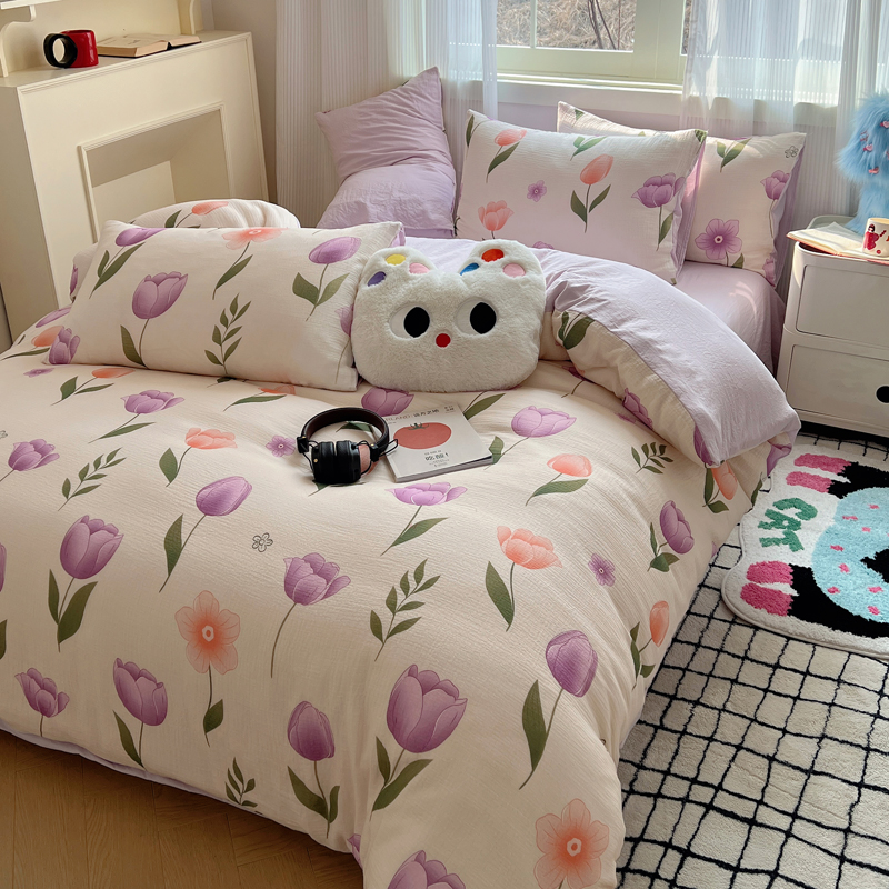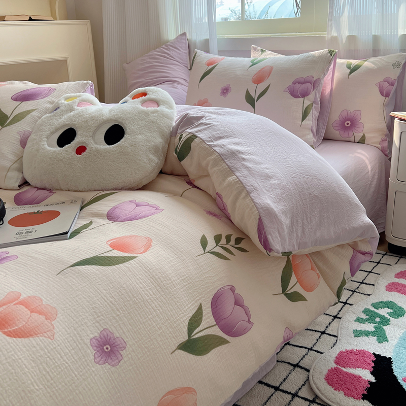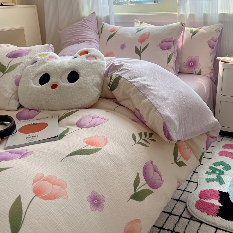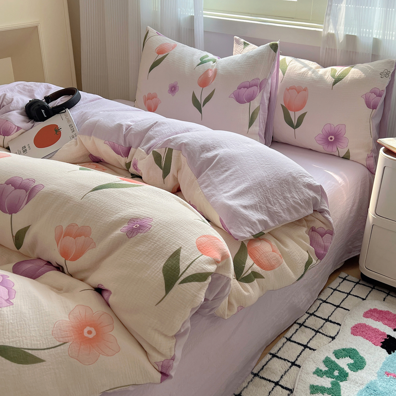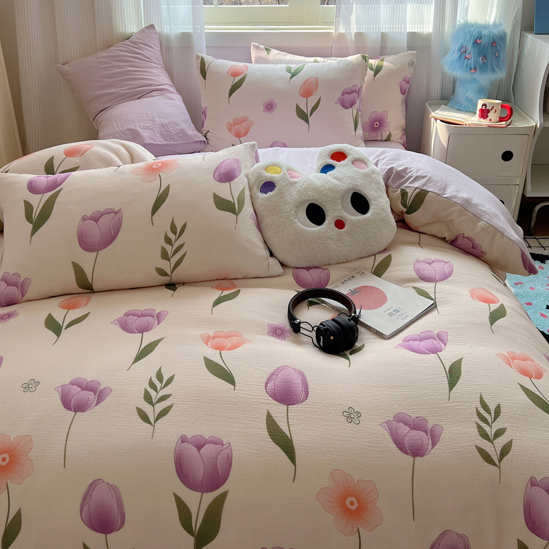 当前位置: 91家纺网 > 商品网购 > 床品套件 > 四件套 > 水洗棉四件套 > 盼季 2024新款A类母婴级水洗棉床上用品四件套卡通儿童床单被套宿舍三件套 紫色郁金香