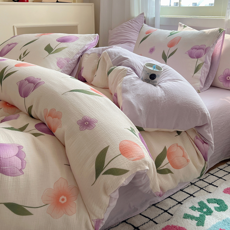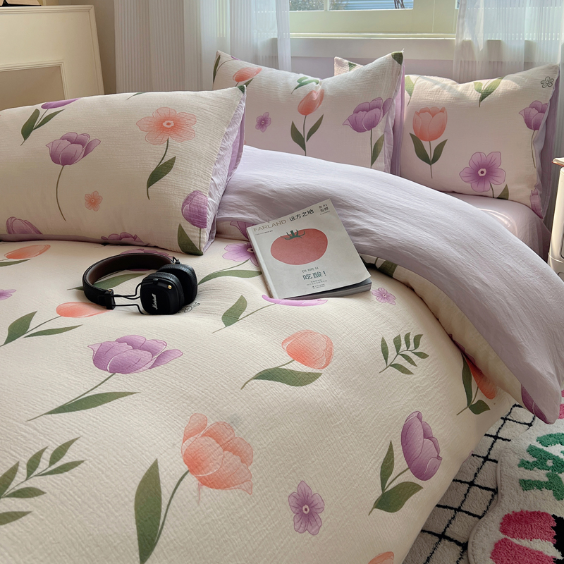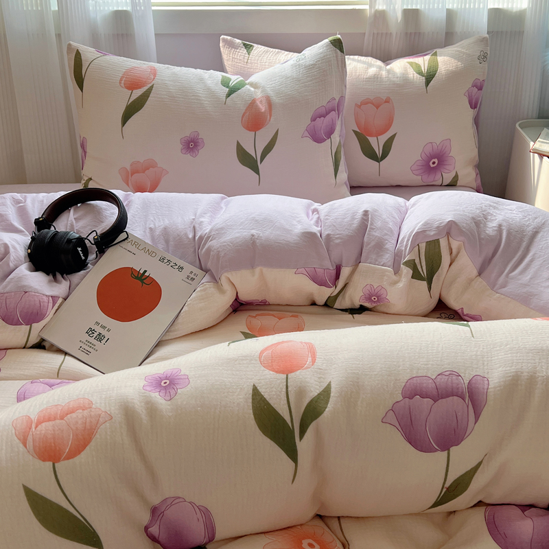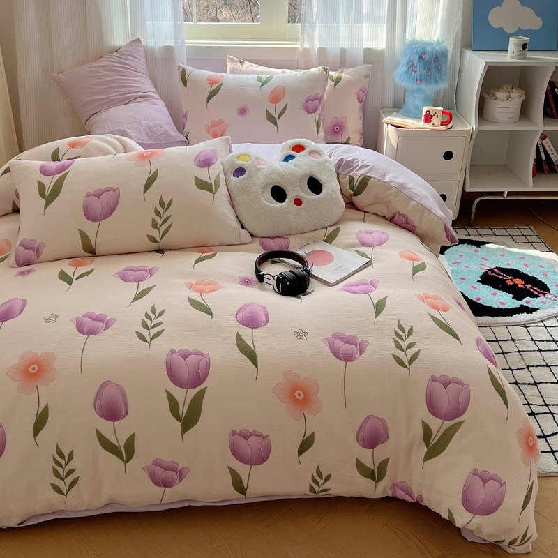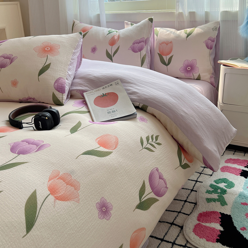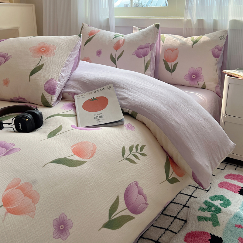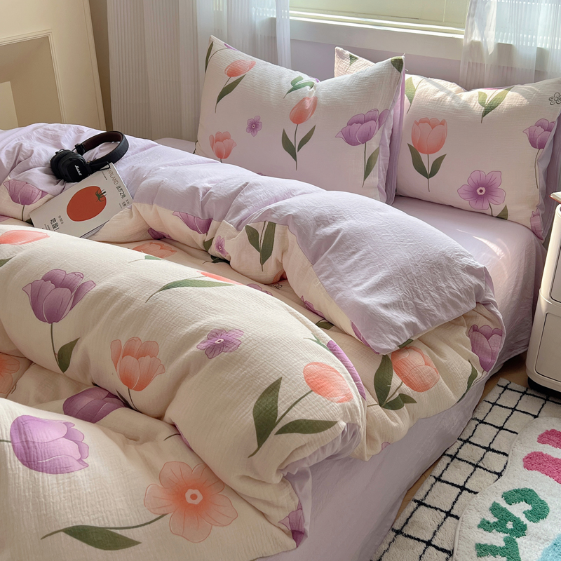当前位置: 91家纺网 > 商品网购 > 床品套件 > 四件套 > 水洗棉四件套 > 盼季 2024新款A类母婴级水洗棉床上用品四件套卡通儿童床单被套宿舍三件套 紫色郁金香