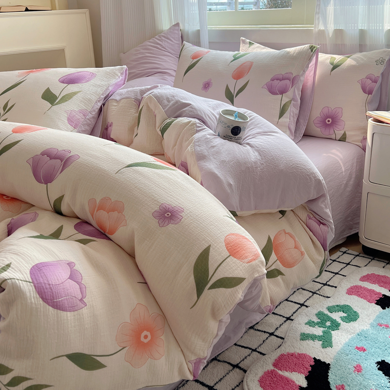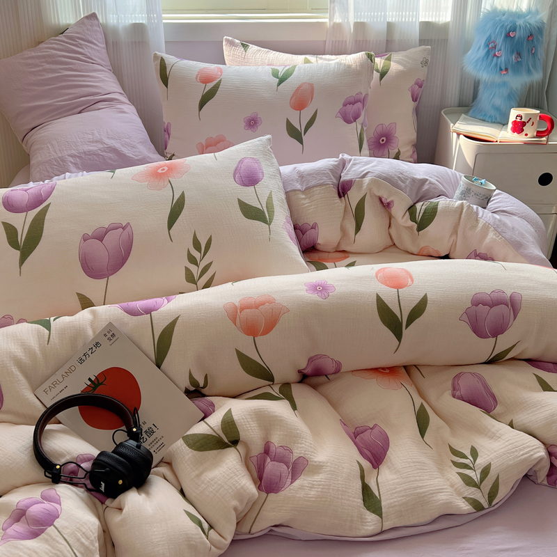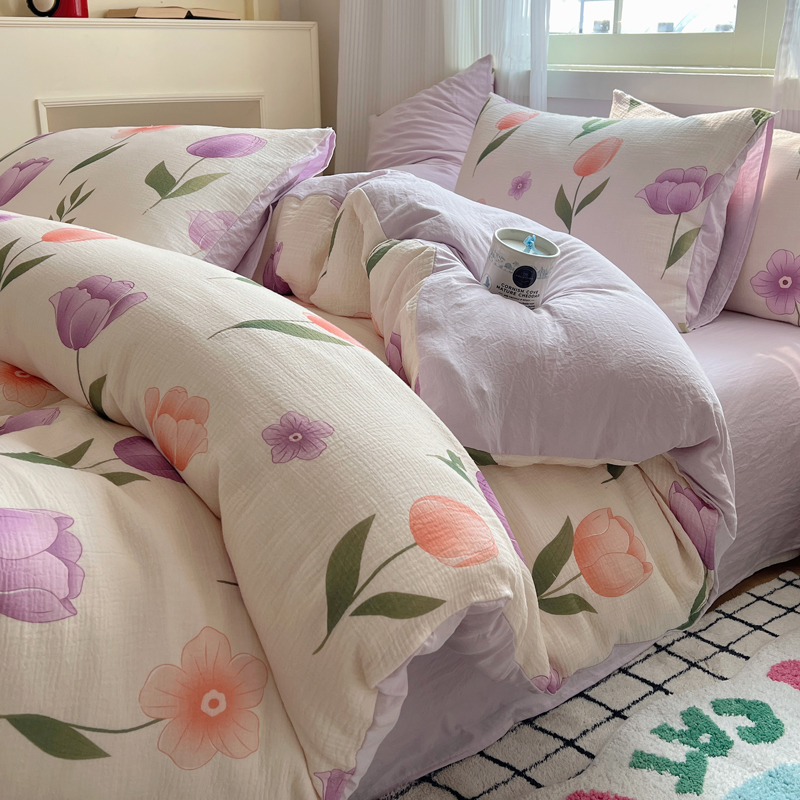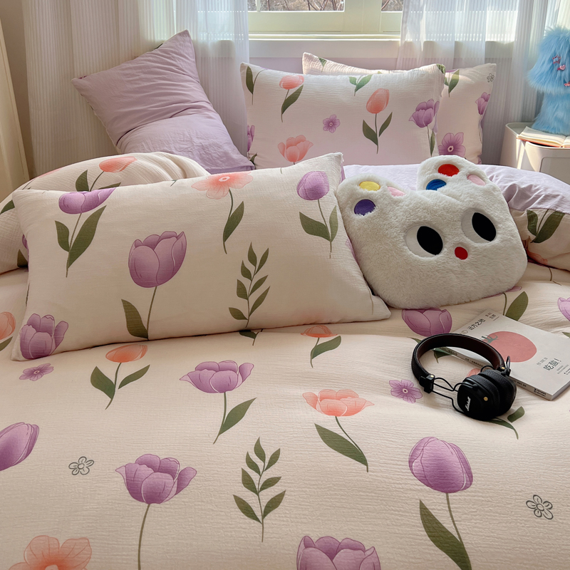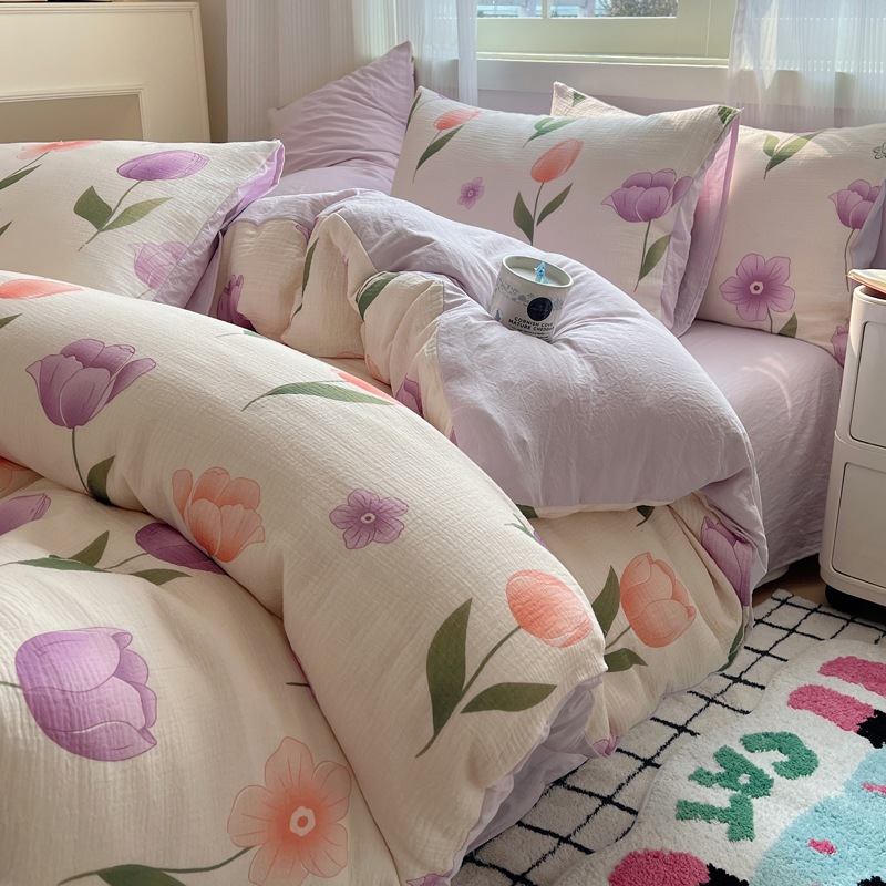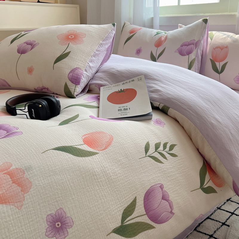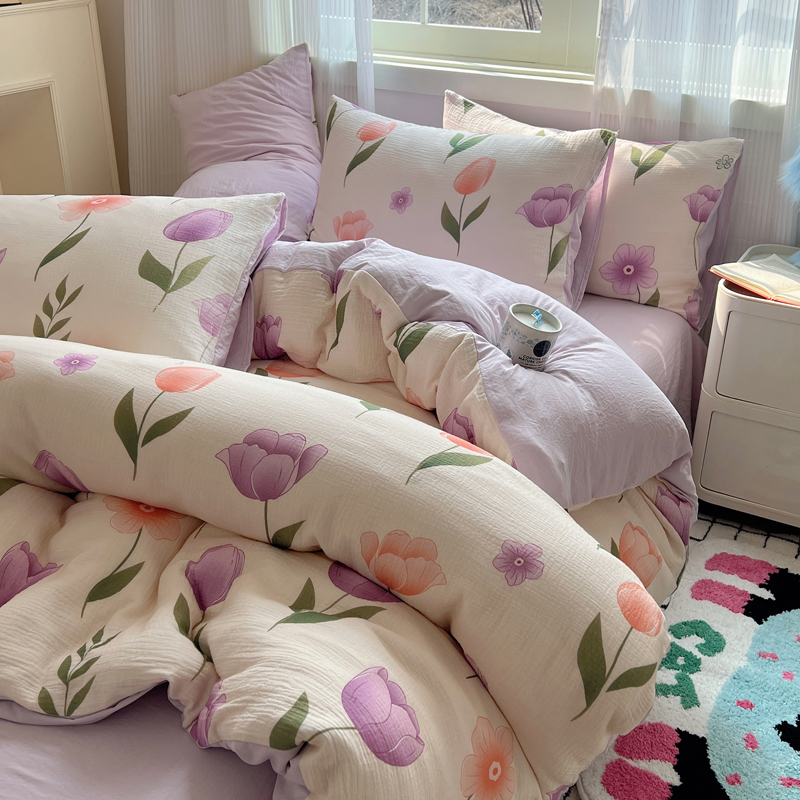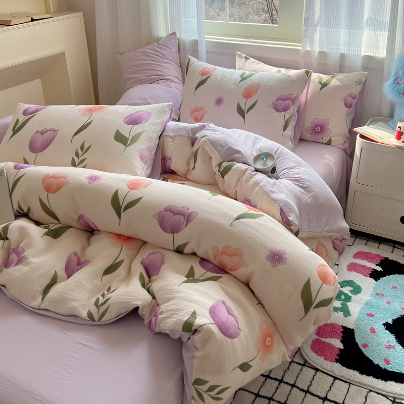 当前位置: 91家纺网 > 商品网购 > 床品套件 > 四件套 > 水洗棉四件套 > 盼季 2024新款A类母婴级水洗棉床上用品四件套卡通儿童床单被套宿舍三件套 紫色郁金香