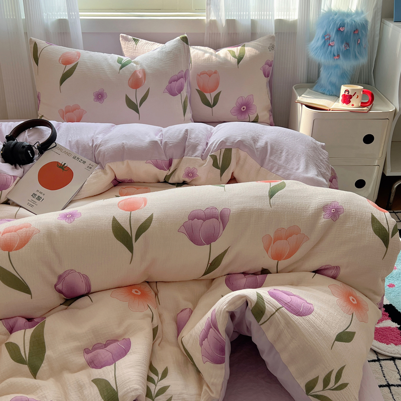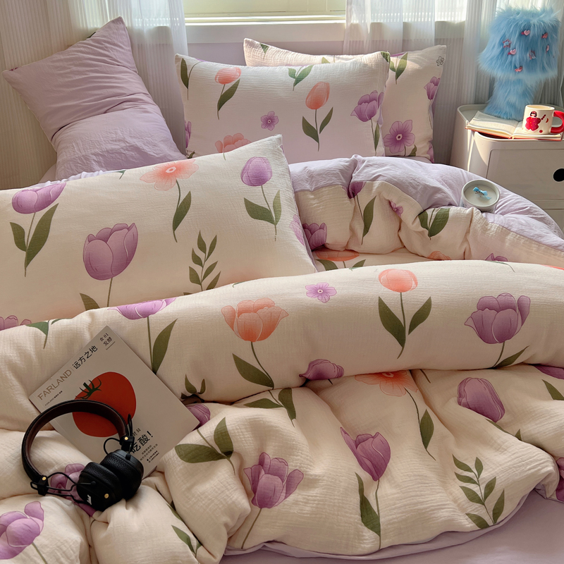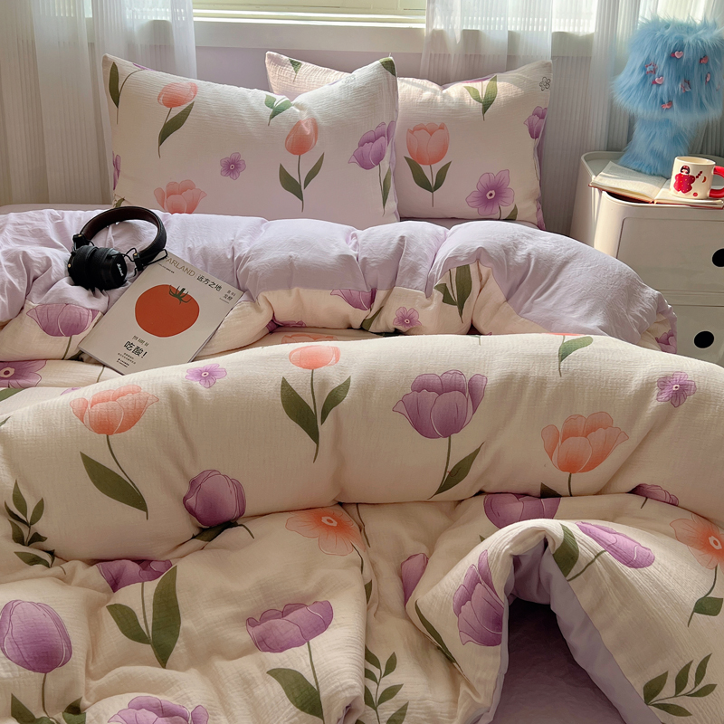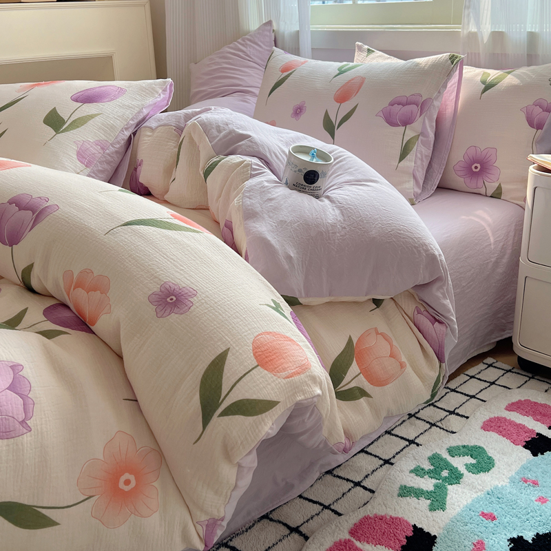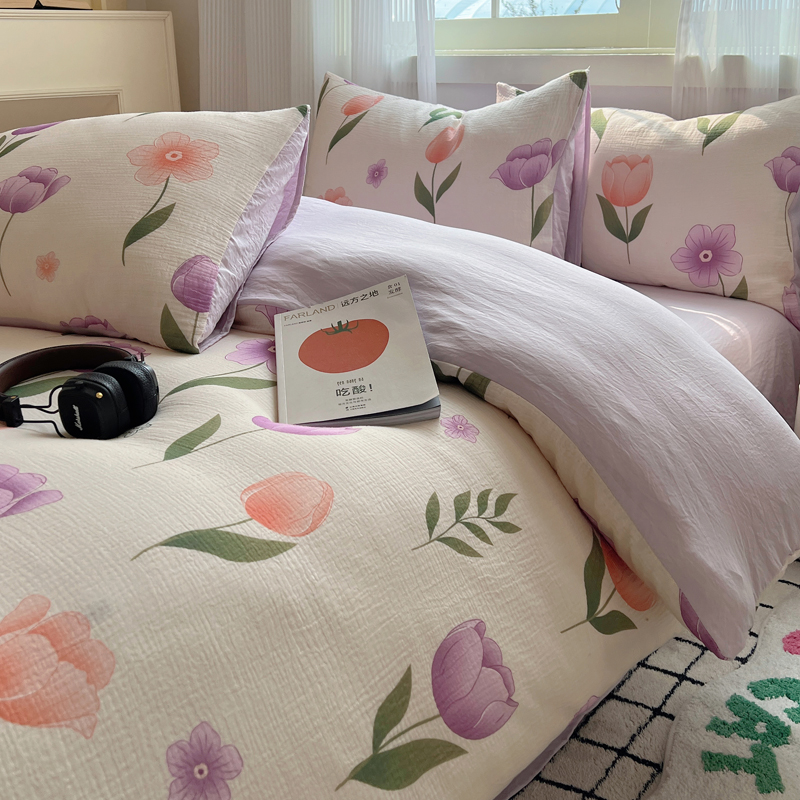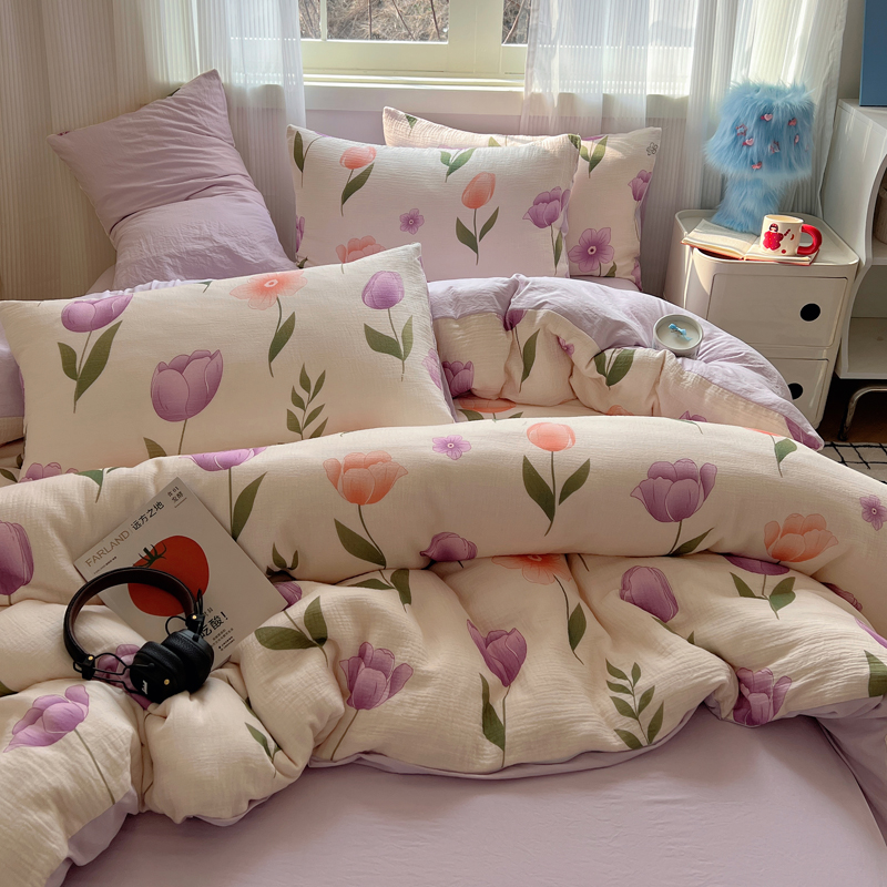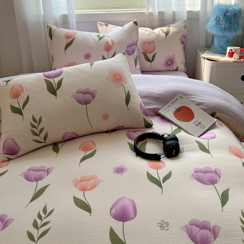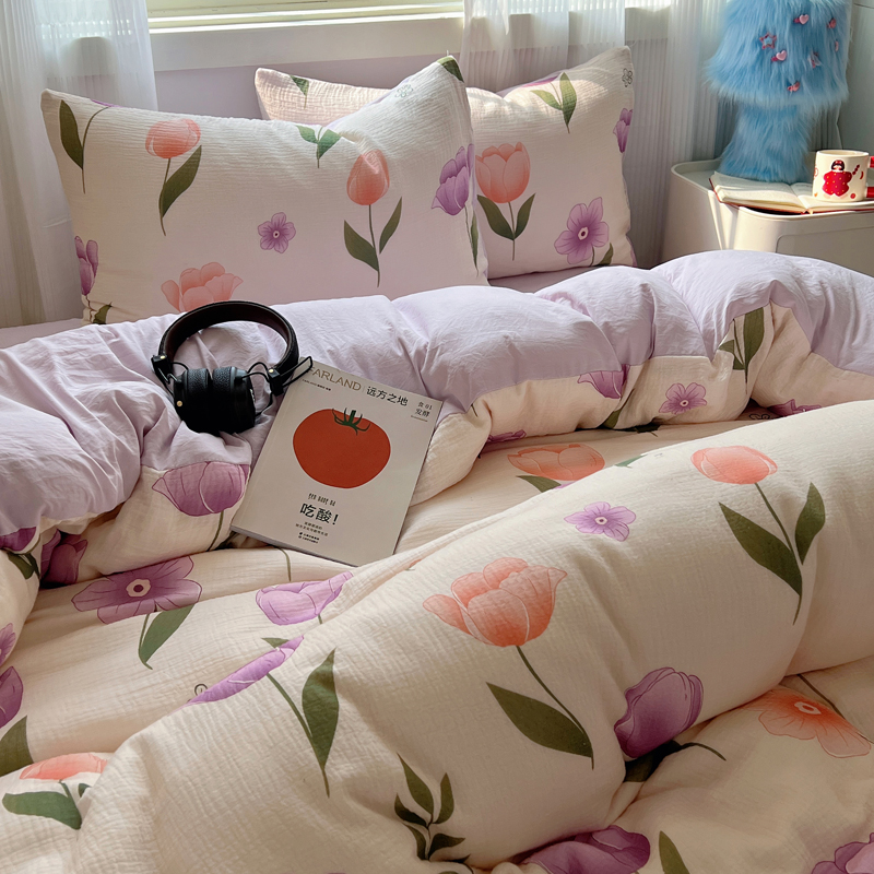 当前位置: 91家纺网 > 商品网购 > 床品套件 > 四件套 > 水洗棉四件套 > 盼季 2024新款A类母婴级水洗棉床上用品四件套卡通儿童床单被套宿舍三件套 紫色郁金香