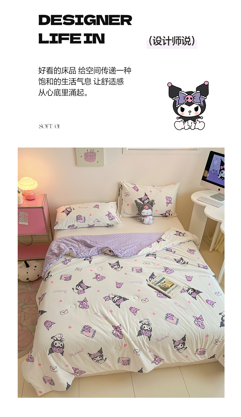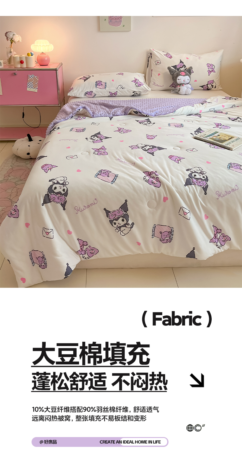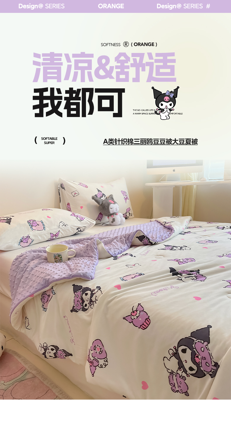 商品名称:莱登卡奴 2025春夏款A类针织棉三丽鸥豆豆被大豆夏被 晚安库洛米
