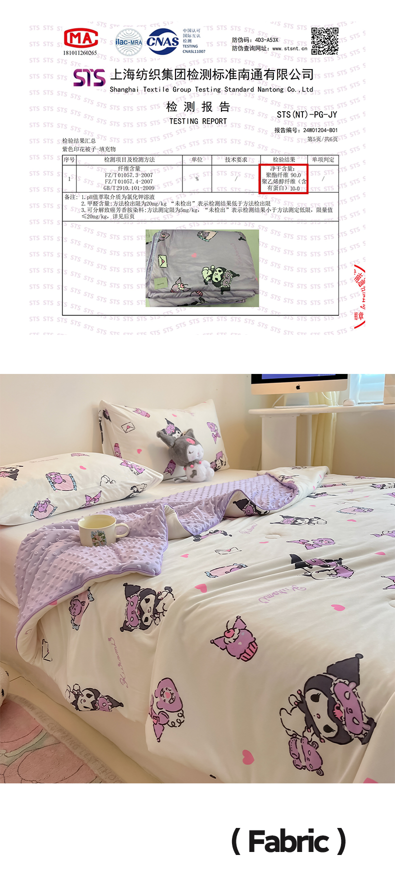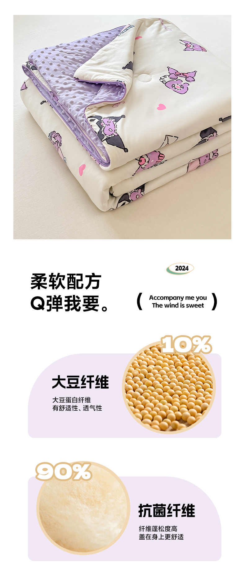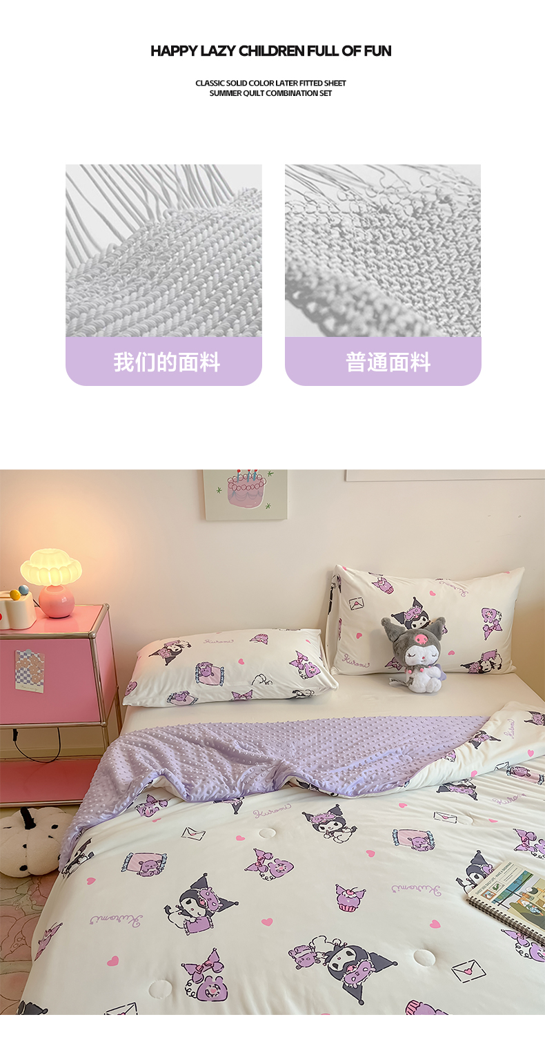 商品名称:莱登卡奴 2025春夏款A类针织棉三丽鸥豆豆被大豆夏被 晚安库洛米